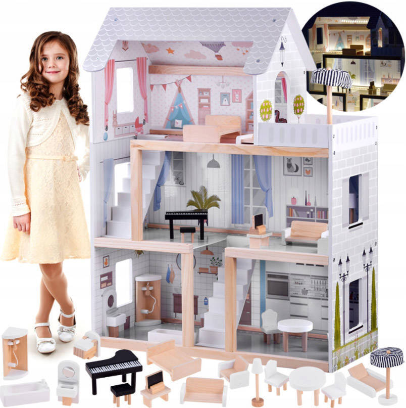 Деревянный кукольный домик с мебелью Boho STYLE + LED