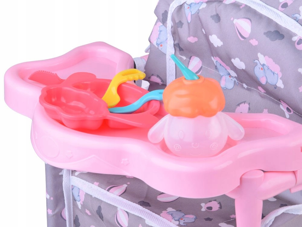 Благодаря стульчику для кормления и дополнительных аксессуаров малыш может разыгрывать реалистичные сценки – от кормления до укладывания куклы спать.