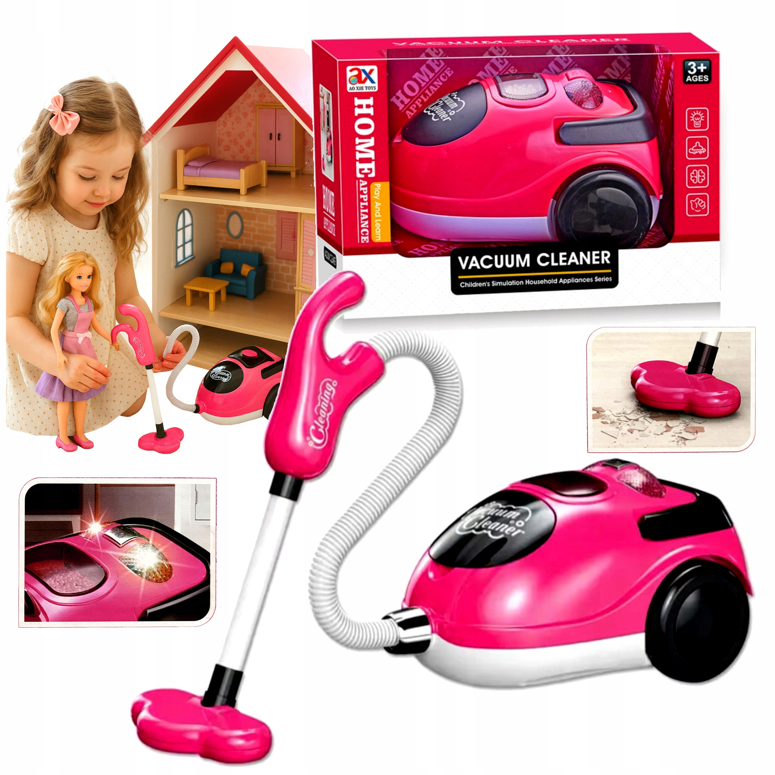 НАБОР ПЫЛЕСОСА ДЛЯ КУКОЛЬНЫХ ДОМИКОВ С ШАРАМИ СВЕТОВЫЕ ЗВУКИ ВСАСЫВАНИЯ РОЗОВЫЙ