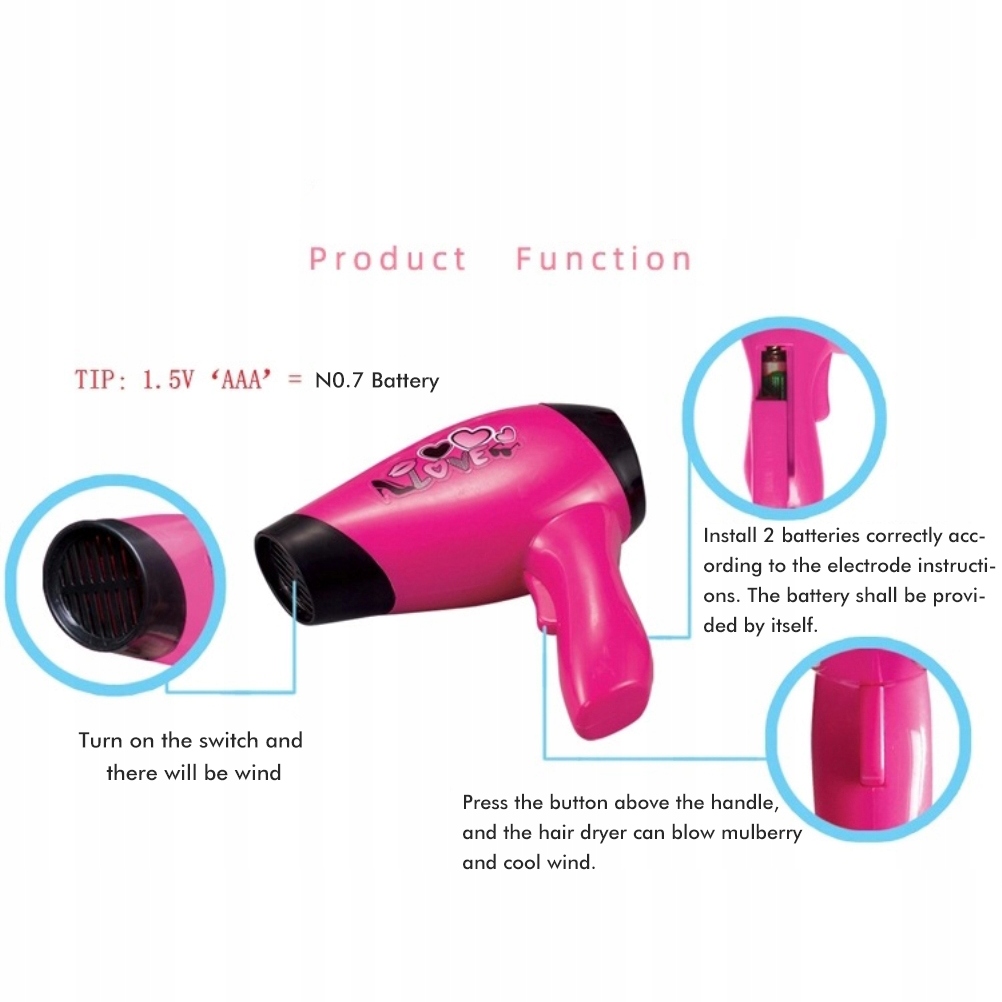 5. Оснащенный множеством аксессуаров, вы можете одеться так, как хотите; А феном нуждается 2 батареи AAA.