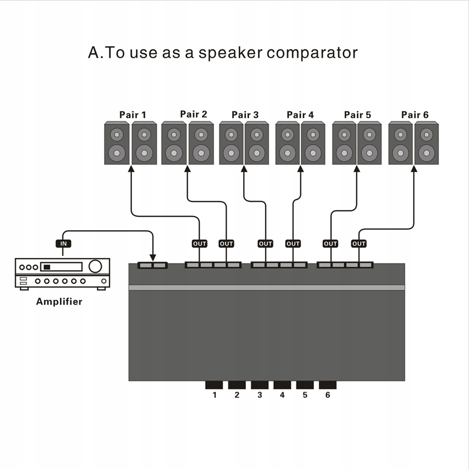 1. 6 Пара одного источника истощения для выбора динамиков поддерживает двухэтажное соединение, которое позволяет подключать 6 пары динамиков к усилителю или наоборот.