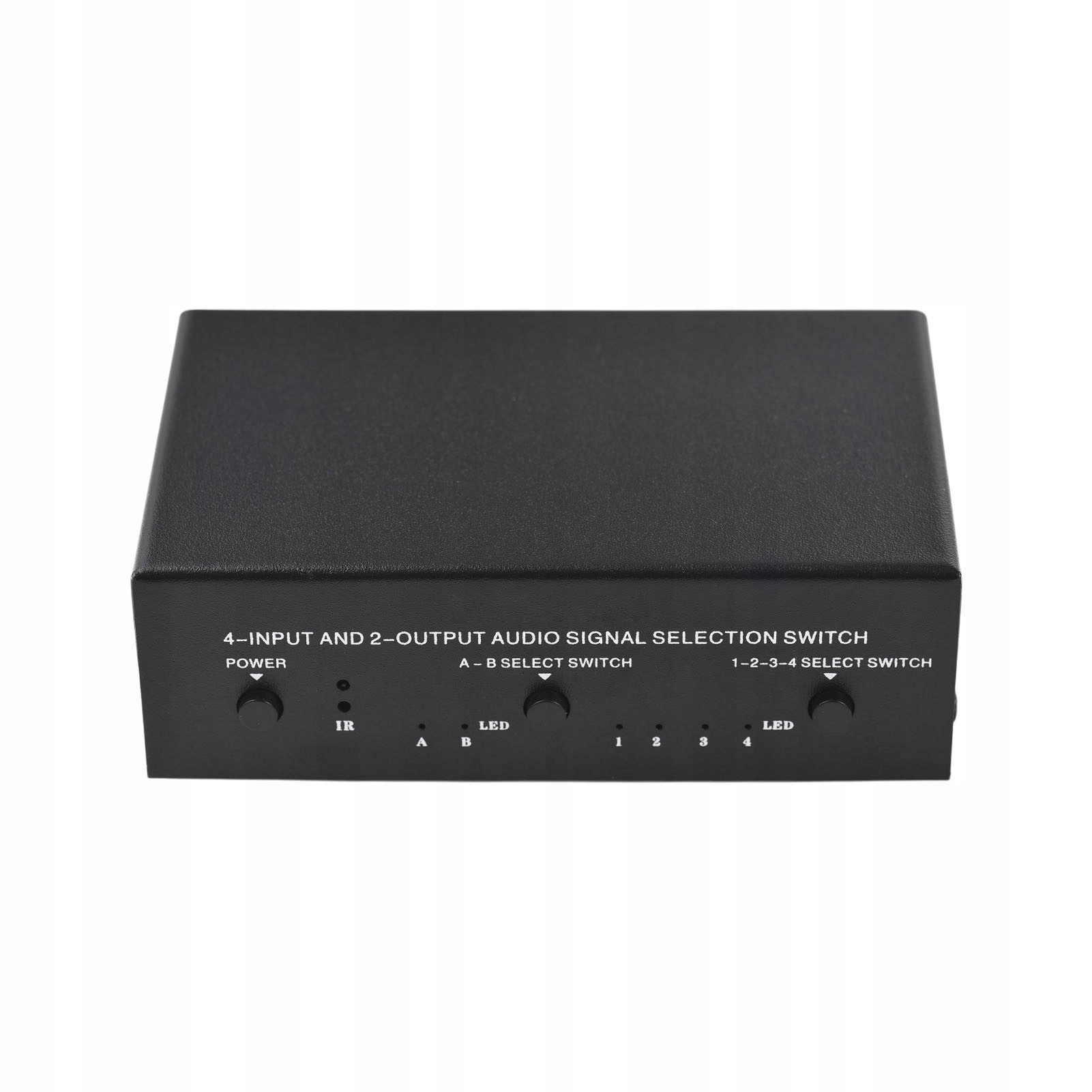1. Универсальный переключатель источника звука: этот переключатель источника звука с 4 на 2 или с 2 на 4 предназначен для улучшения качества звука, позволяя легко переключаться между несколькими источниками входного сигнала, такими как телевизор, MP3-плееры и т. д., с помощью одного AV-переключателя.