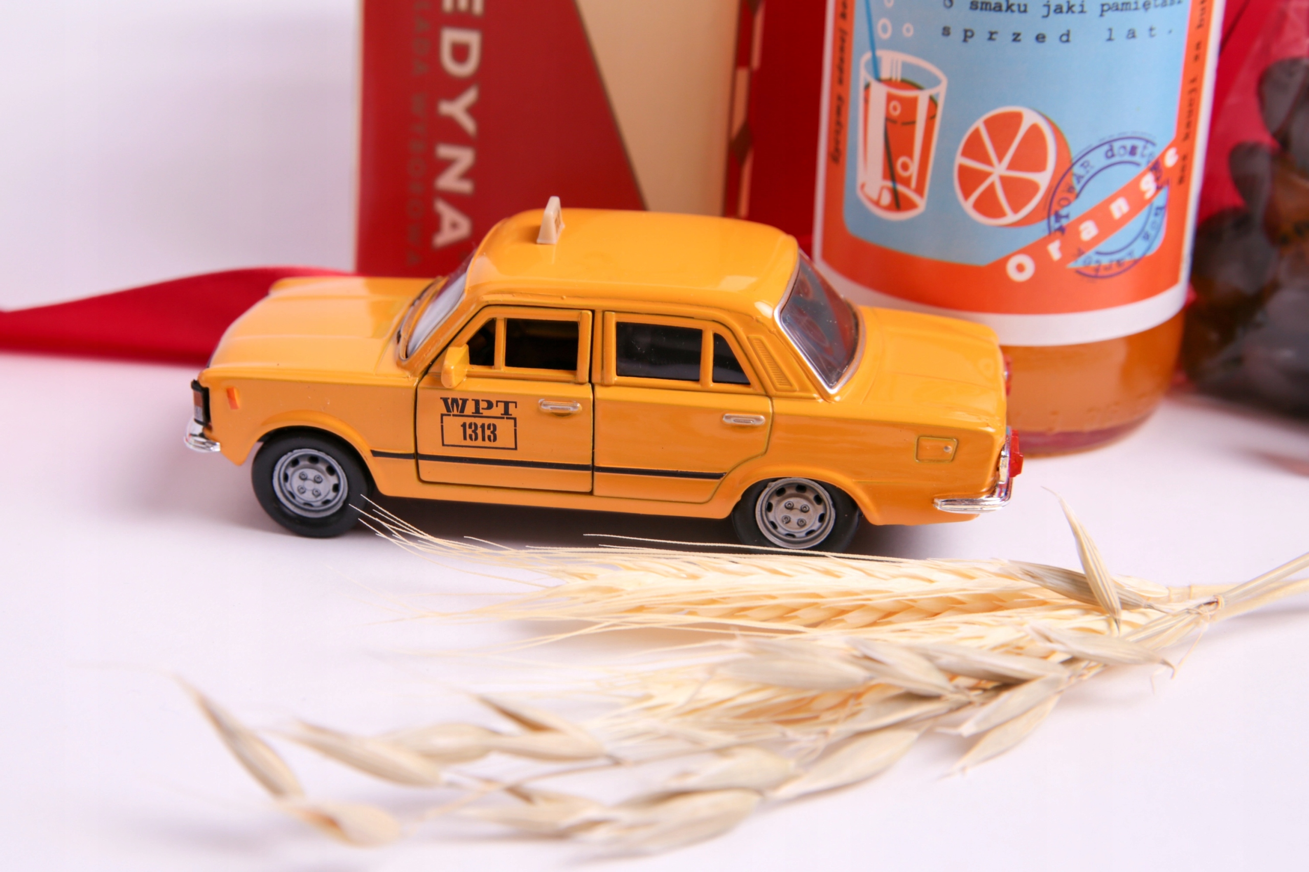 Весь упакован в коробку красного выреза с окном (25x20x10 см), заполненной бежевой экологической декологической бумагой , связанной со стильной лентой и украшенной натуральным зерном - Triticale и Oat , создает чрезвычайно атмосферный подарок. 125p Taxi prl Wellly (1:34) - желтая легенда о польских дорогах, известная каждому поклоннику серии «Заменители».