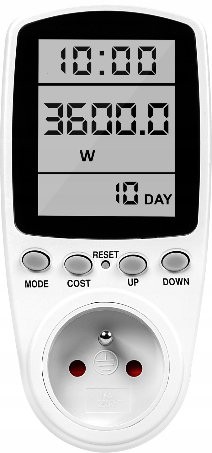 Прибор имеет функциональные размеры, после подключение к розетке не занимает много места. Несмотря на это, счетчик оснащен большим и четким дисплеем, благодаря которому мы можем без каких-либо усилий считывать все записанные параметры. . h1> ✅ Функциональные кнопки