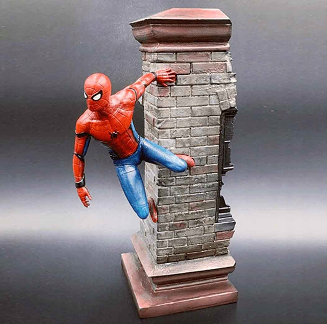 Питер Паркер, также известный как Человек-Паук, был учеником старшей школы и супергероем с паучьими способностями, борющимся с преступностью как свое альтер-эго Человека-Паука. Он получил свои способности после укуса паука. Паркер решил защитить Квинса от преступности как полноценный супергерой и совместить это с учебой в старшей школе. Несмотря на все его усилия сохранить свою личность в секрете от мира, он был найден и завербован Тони Старком в «Гражданской войне Мстителей», получив новый костюм и технологии в обмен на его помощь. Представленная диорама является обязательным дополнением коллекции каждого поклонника комиксов Marvel.