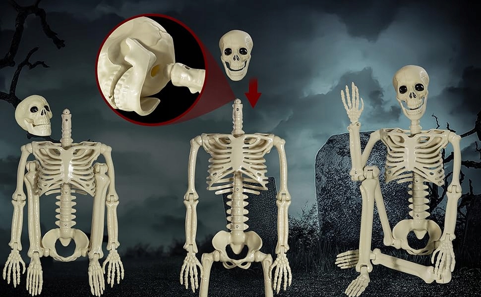 - Перемещающиеся соединения: скелет выглядит очень реалистично, ужасает, потому что все суставы подвижны, челюсть подвижна. Скелет может предложить различные реалистичные позы, чтобы адаптироваться к разным сценам.