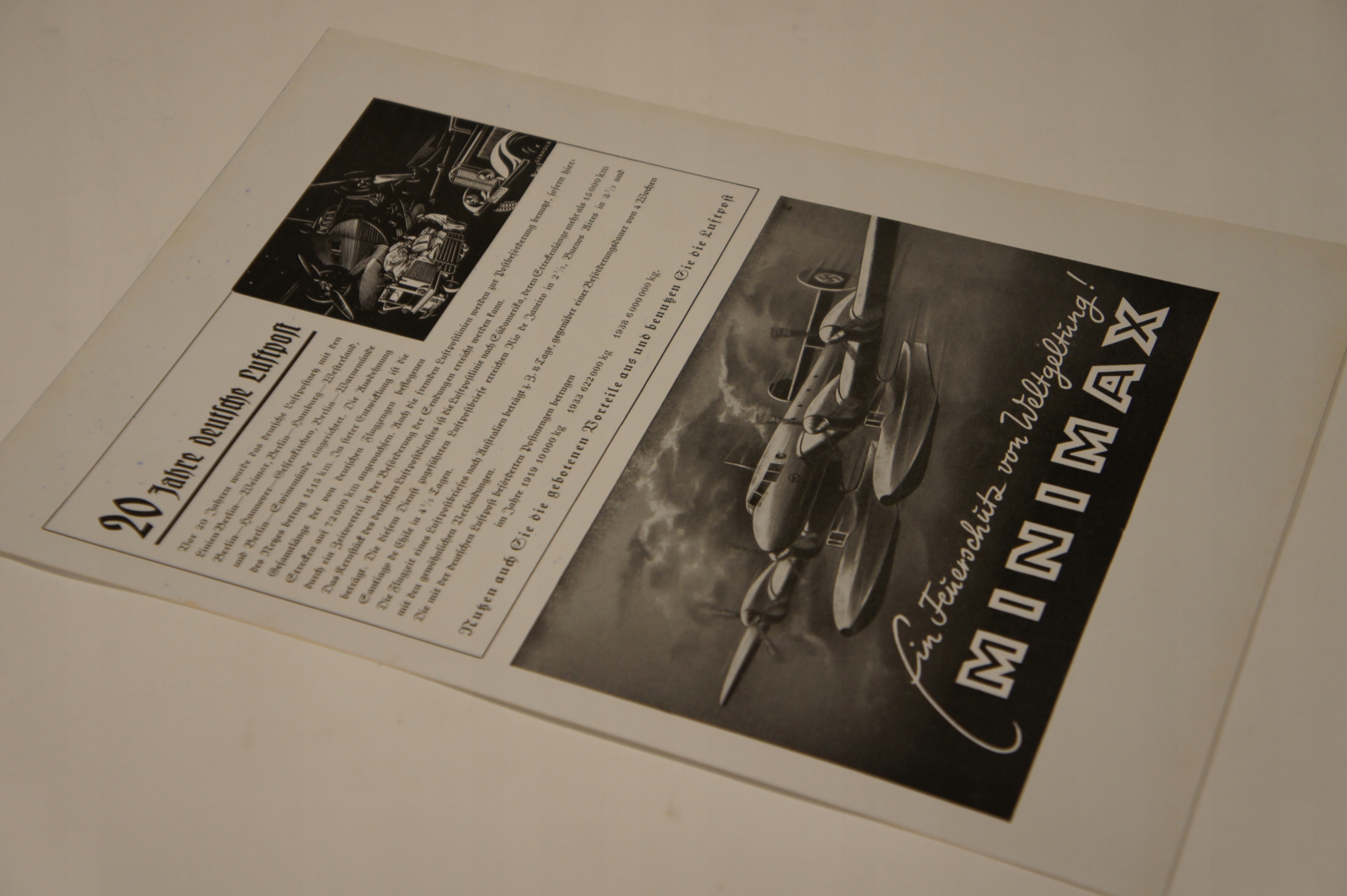 Люфтваффе РЕКЛАМА MINIMAX FLEUGZEUG ТРЕТІЙ РЕЙХ 1939, WWII, WWII