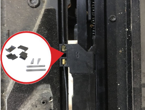 Наиболее распространенной причиной этого являются повреждения, трещины или поломка пластиковых элементов и направляющих направляющих механизма люка.