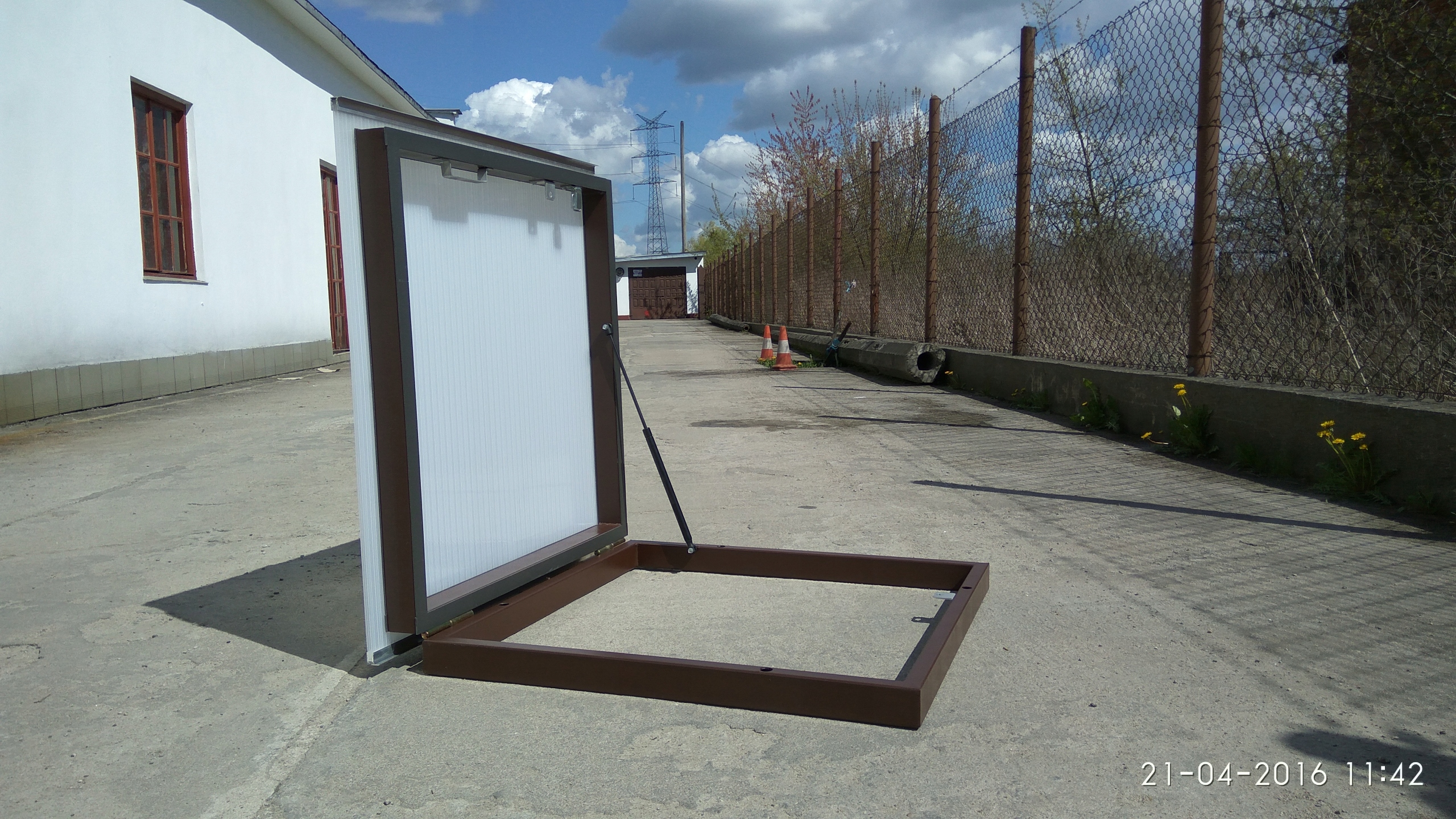 Плоская крыша люк 80*80 см в свете рамы (внутри) с углом открытия около 90 градусов в газовом тренажерном зале. ! !