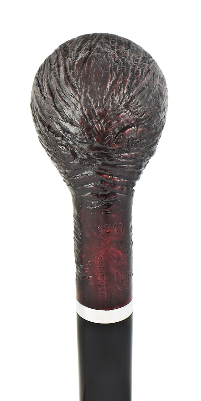 Оригинальная трубка, созданная английской компанией Barling. Головка имеет темно-бордовый оттенок шиповника с нежными вишневыми отблесками. Почти вся поверхность шиповника была покрыта четкими бороздками. Гладкими остались только обод и фрагмент низа горловины, с логотипом компании, названием и номером модели – гарантия оригинальности. Между шеей и мундштуком имеется серебряное кольцо, освещающее все. Голова дополнительно украшена двойным рифленым кольцом. Акриловый мундштук подсвечен металлической круглой вставкой с изображением головы льва. Этот элемент добавляет всему мастерство и элегантность. Предварительно науглероженный дымоход вмещает среднее количество табака. Идеальная родезийская форма идеально лежит в руке.