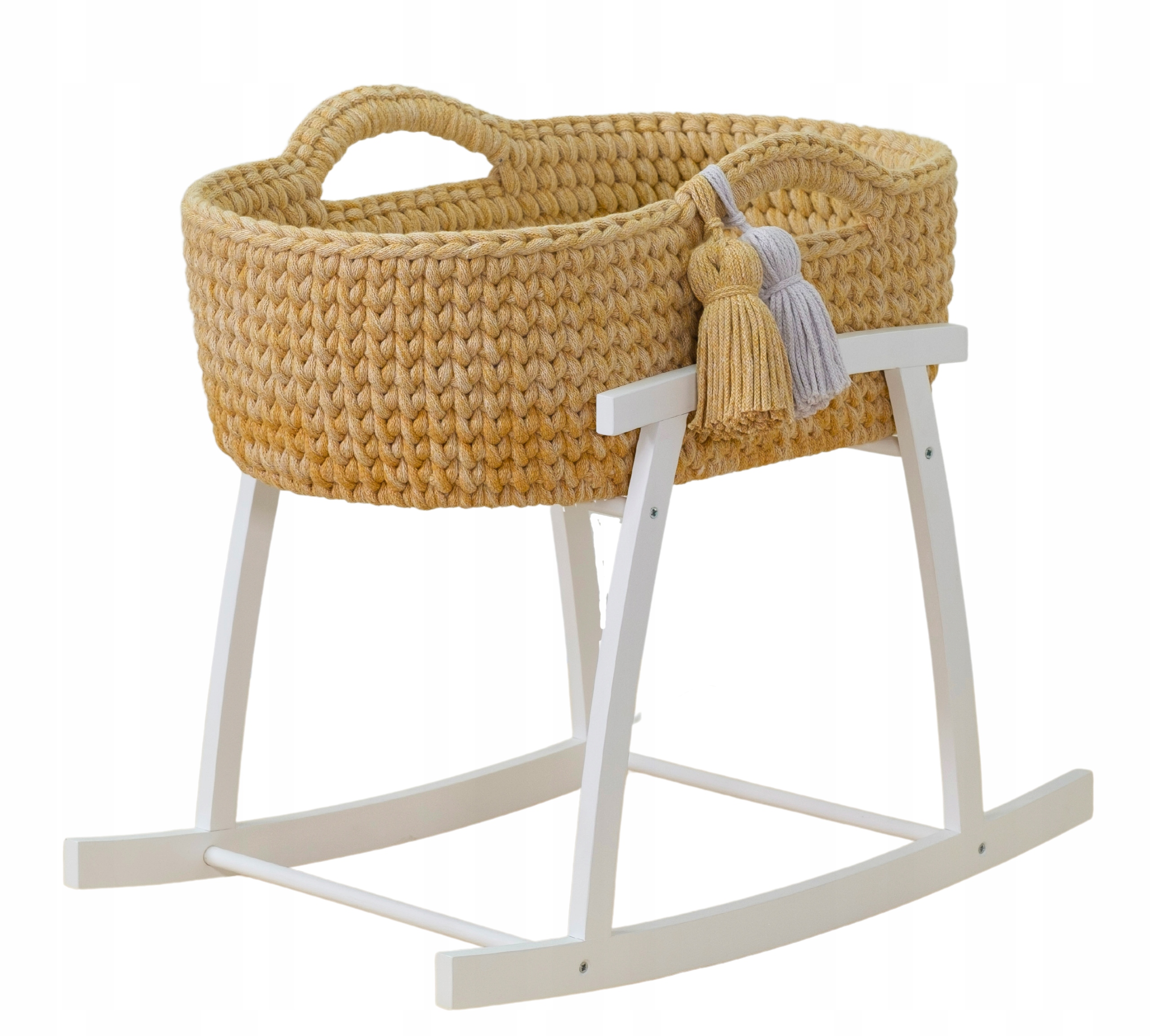 Люлька для ляльки - Як Мойсей - соняшник, кошик + біла дерев'яна качалка