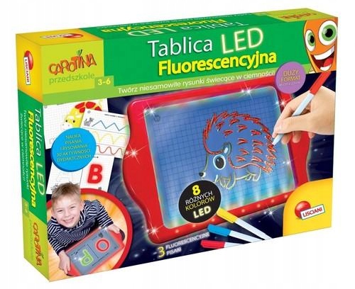 Светящаяся флуоресцентная доска, на которой рисунки вашего ребенка видны в темноте. 8 различных режимов подсветки. Используя флуоресцентные маркеры, можно рисовать бесконечное количество раз, стирая рисунки сухой тканью. Универсальный, как классическая доска, и яркий, как неоновая вывеска!