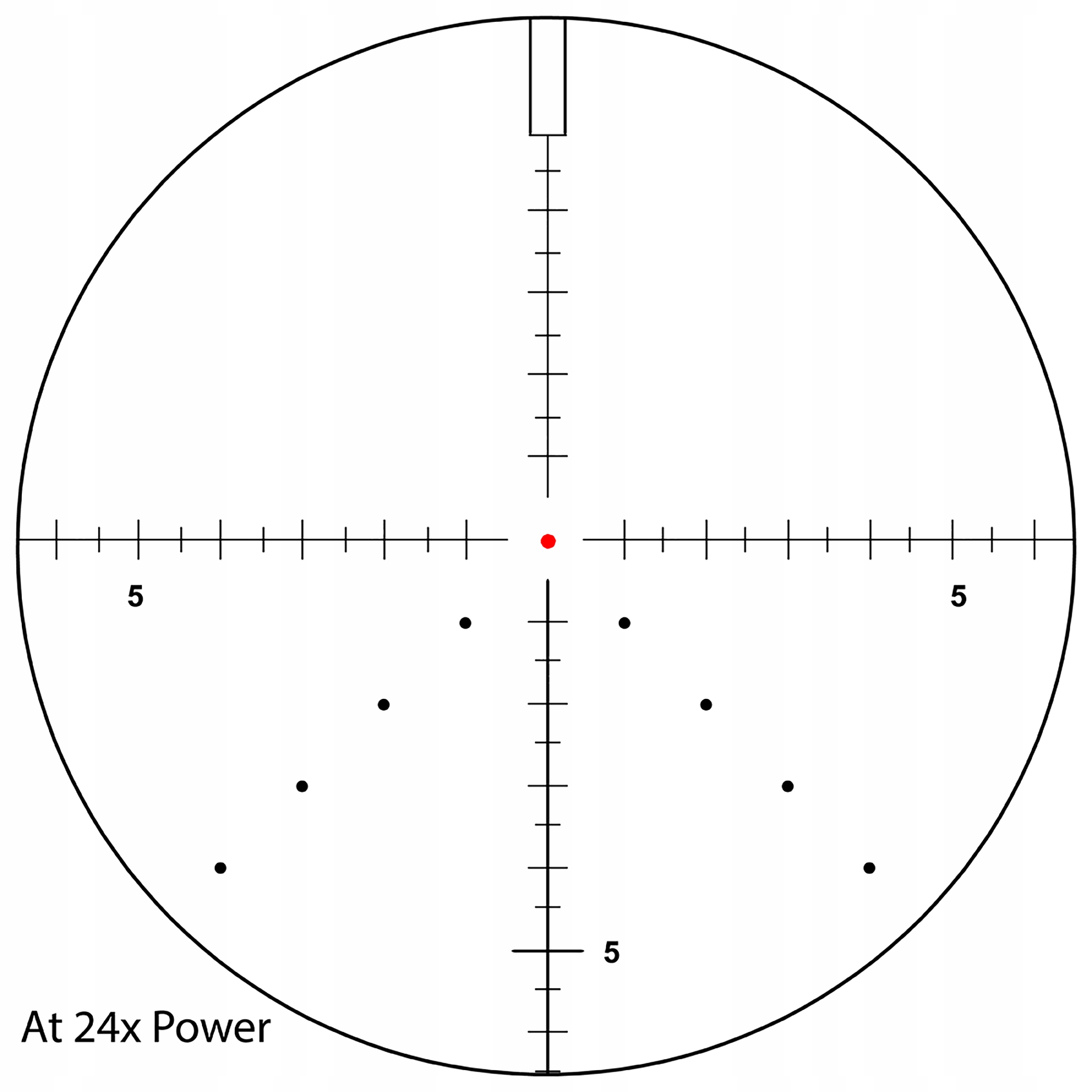 Телескоп был оснащен баллистическим крестом MPR-V5 на первом плане ( ffp - плоскость первого фокала ), что означает, что изменение в среде. Точка зрения имеет 6 уровней подсветки в красном, , которые можно отрегулировать с помощью боковой ручки - между каждым из 6 мод есть функция выключения. многословное покрытие линз (FMC) обеспечивает четкое и высококачественное изображение.
