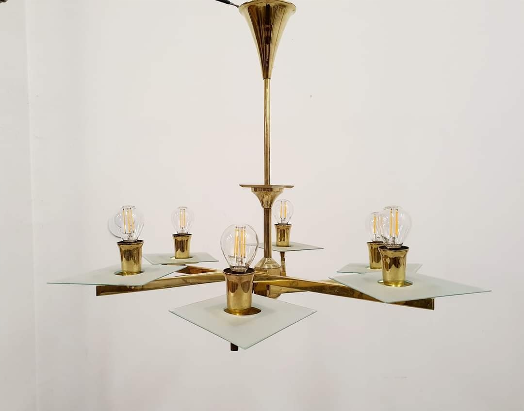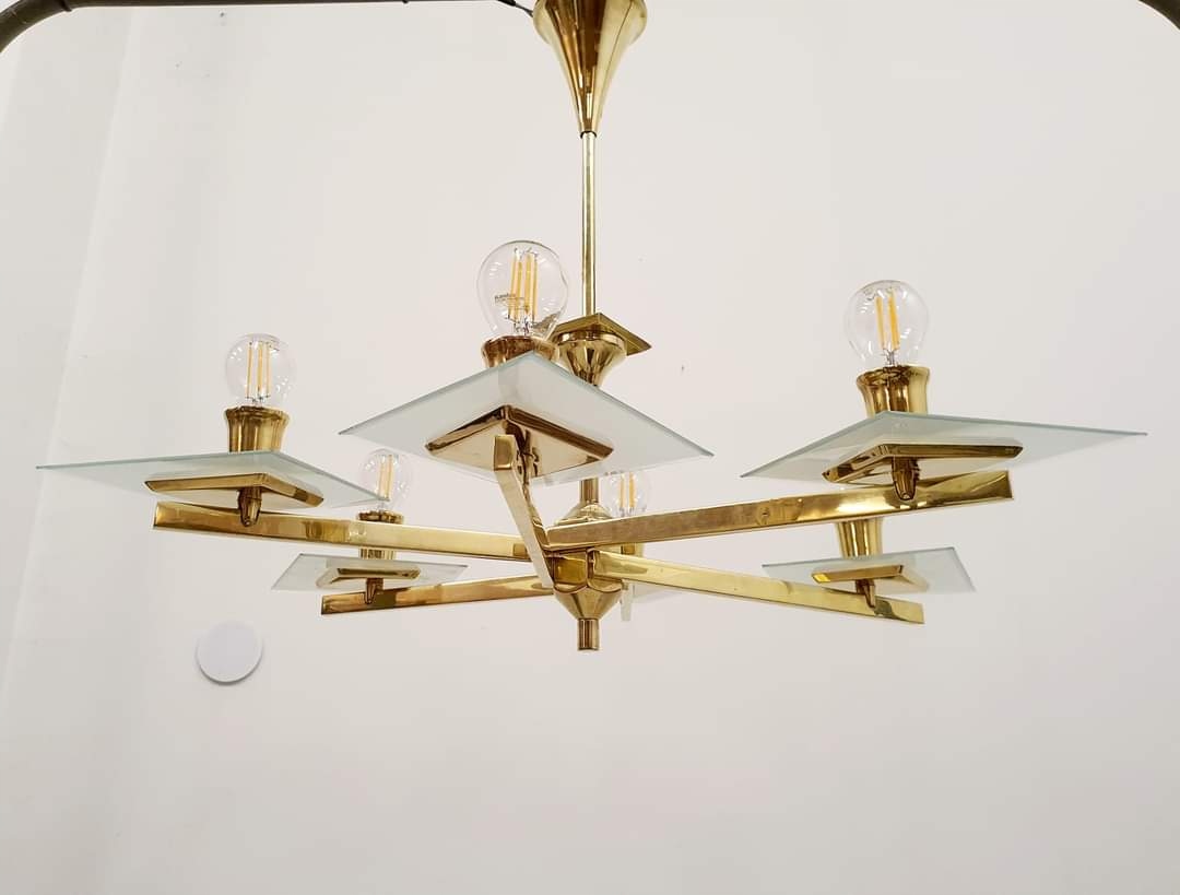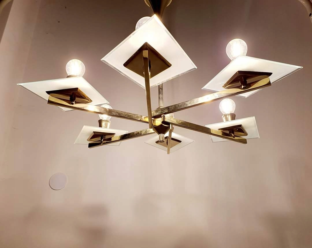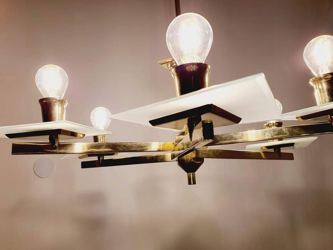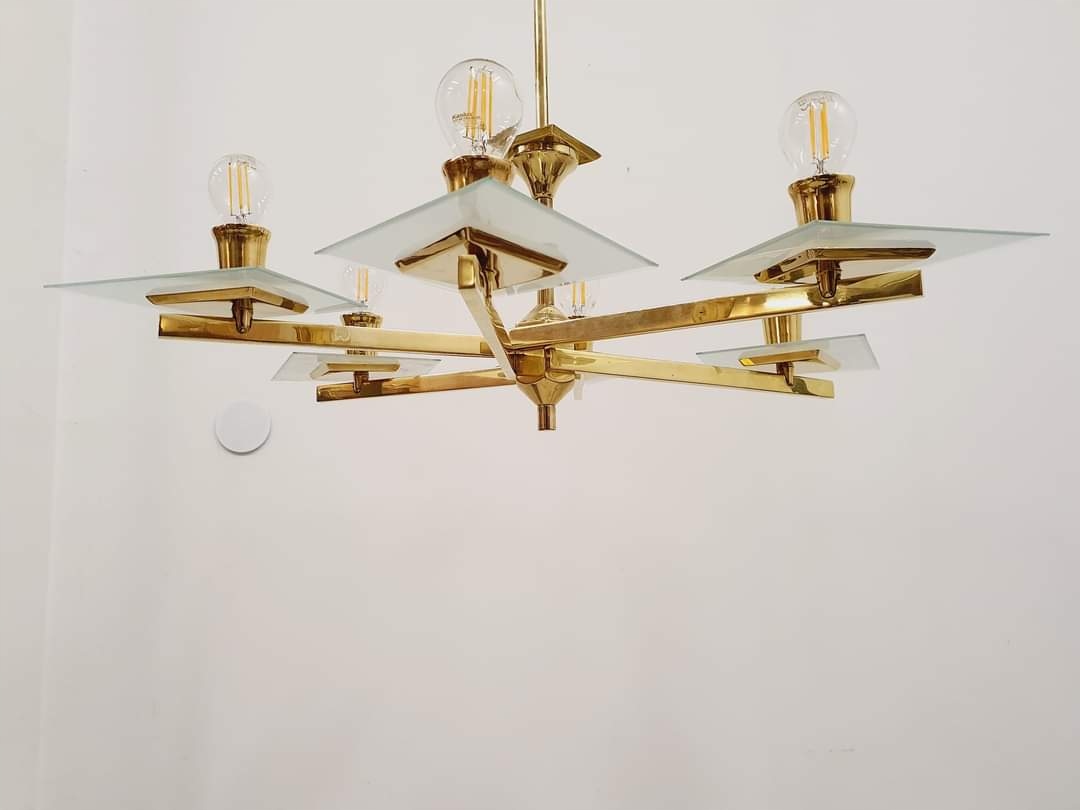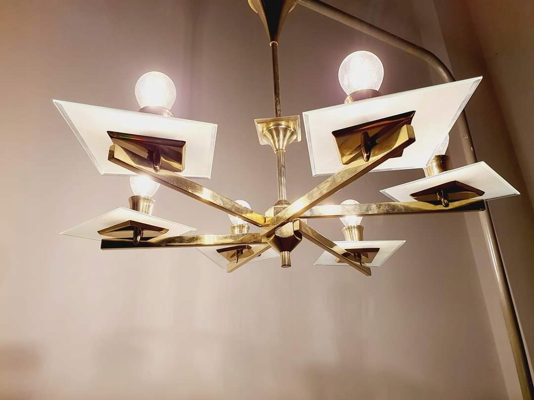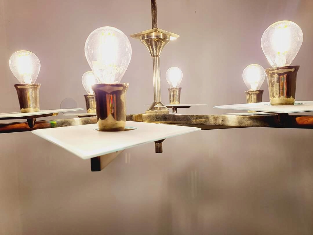 Светильник разобран на первые части, латунные элементы отполированы и защищены, электрика полностью заменена на новую (с делением 3 плюс 3). ).