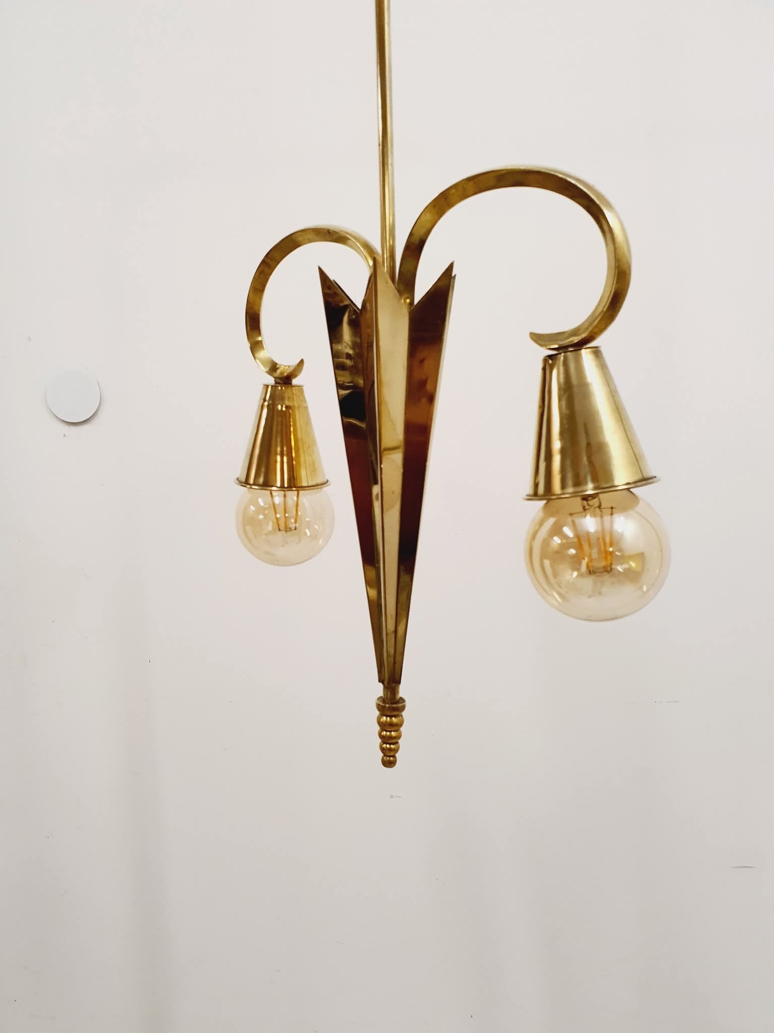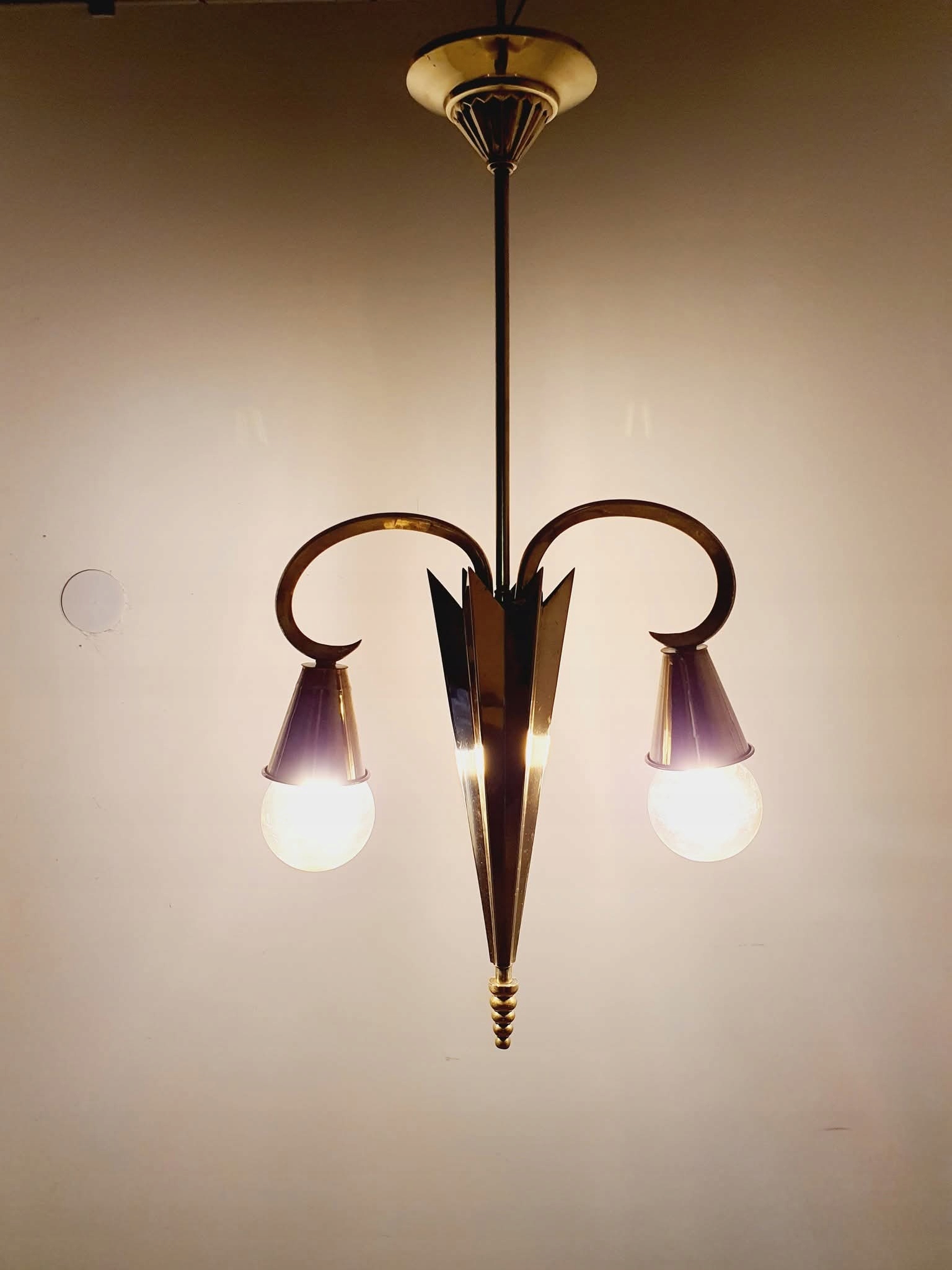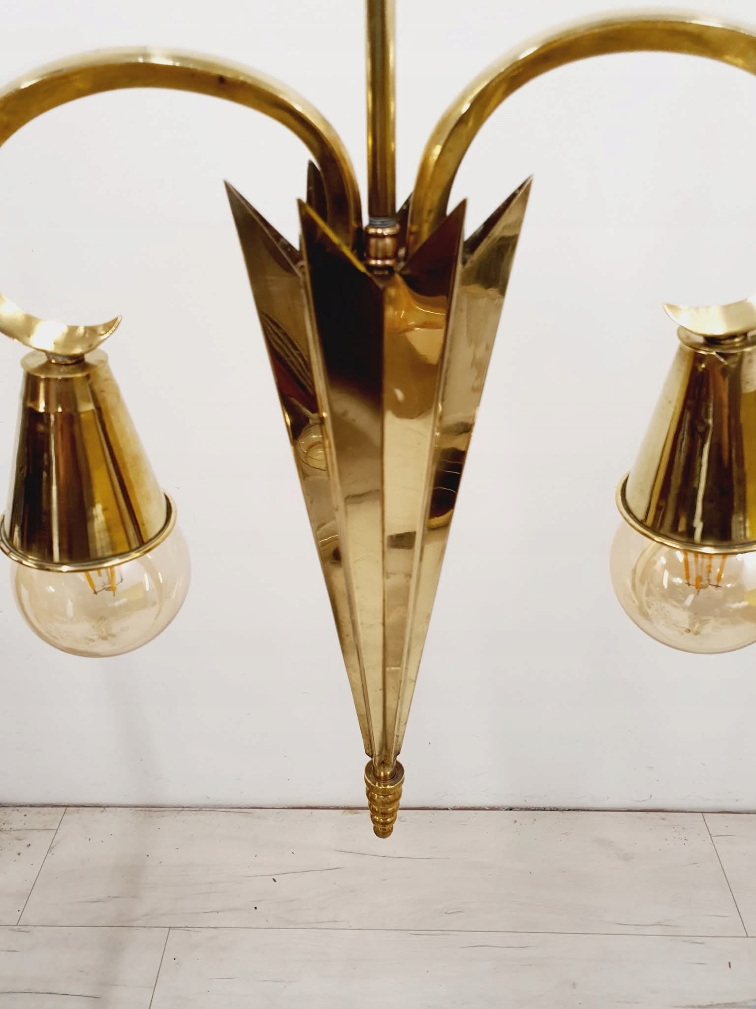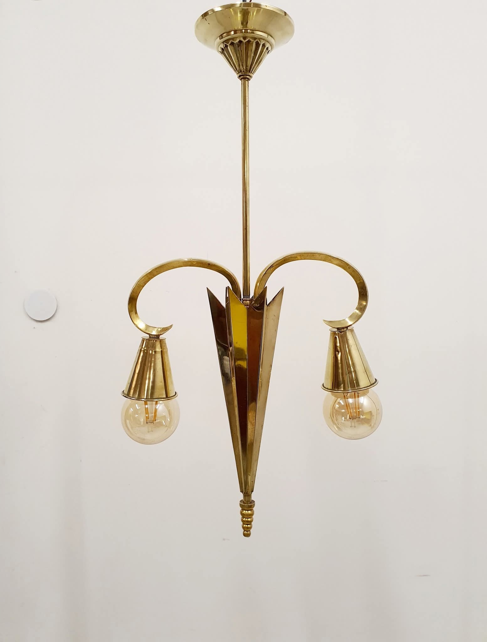 Лампа после ремонта. Латунные элементы были очищены, электрик полностью заменил новым.