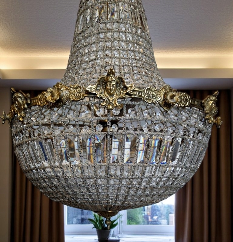 лампа очень декоративная и привлекательная. Ее привезли из Франции. Он представляет собой комбинацию латуни и стекла, которое отвлекает в нем луча света, что заставляет нас получать очень яркий и приятный свет. Дополнительным декоративным элементом являются легкие тренды, брошенные на потолок во время освещения так называемой паутины. h1> Лампа имеет 4 точки света (2 вверх, 2 вниз) для лампочки с потоком E-27 (так называемый большой поток) h1>