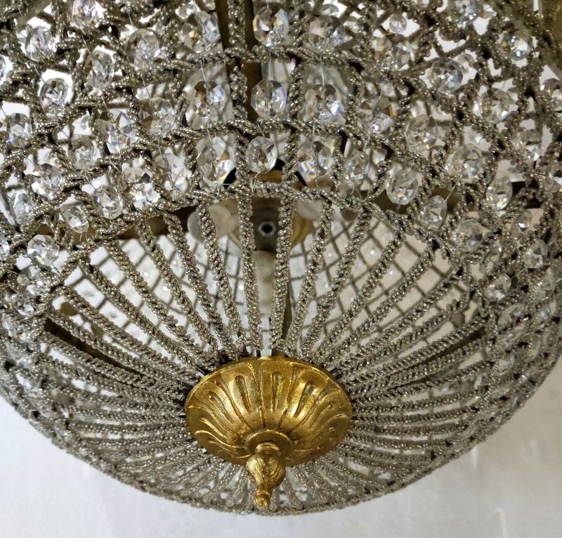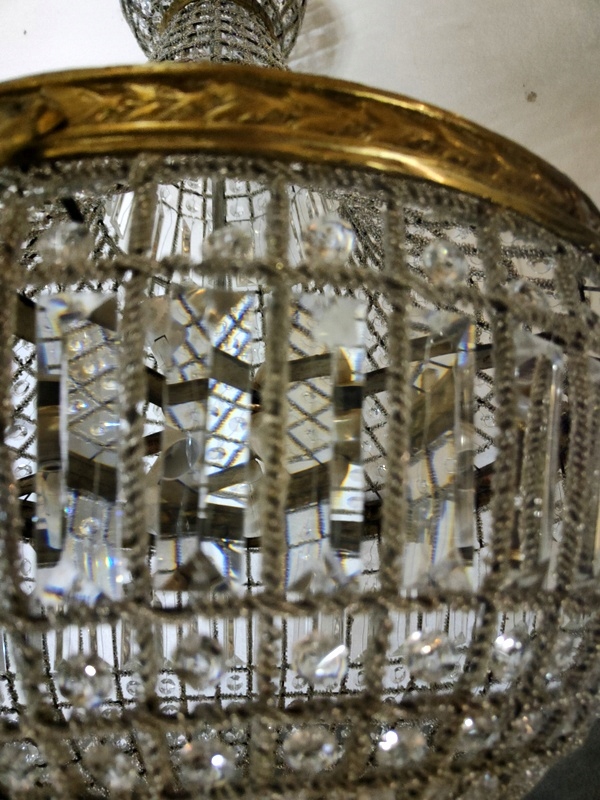 Лампа была очень декоративной и привлекательной, она была доставлена из Франции. Он представляет собой комбинацию латуни и стекла, которое отвлекает в нем луча света, что заставляет нас получать очень яркий и приятный свет. Дополнительным декоративным элементом являются легкие тренды, брошенные на потолок во время освещения так называемого паука-очень хорошее состояние.