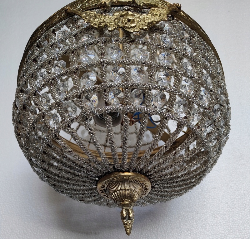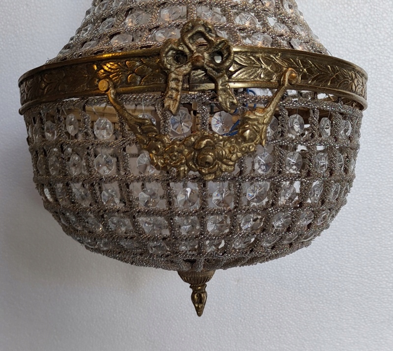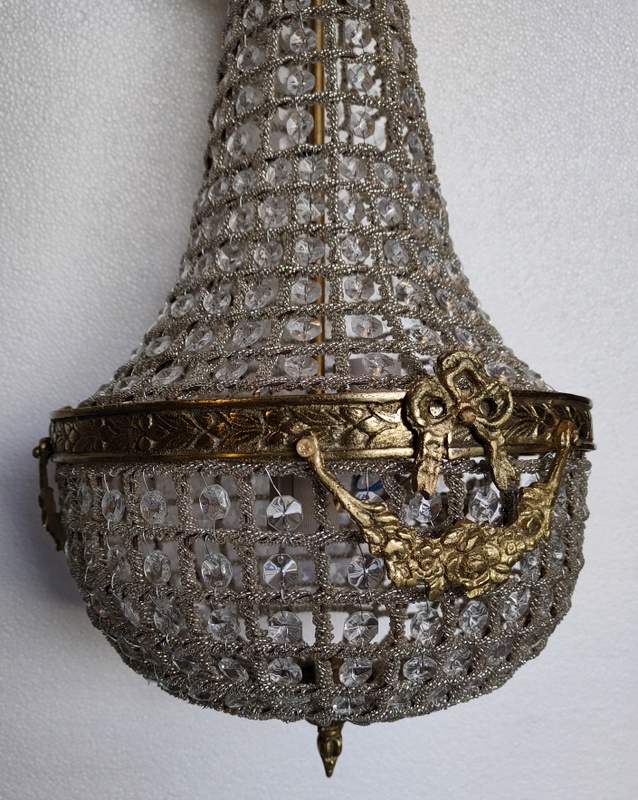 Очень декоративный и привлекательный светильник, выполненный в старинном и историческом стиле. Сделано современно; был импортирован из Франции. Он представляет собой сочетание латуни и стекла, которое рассеивает преломленные световые лучи, в результате чего получается очень яркий и приятный для глаз свет. Дополнительным декоративным элементом являются свет и тени, отбрасываемые на потолок при так называемом паутина.