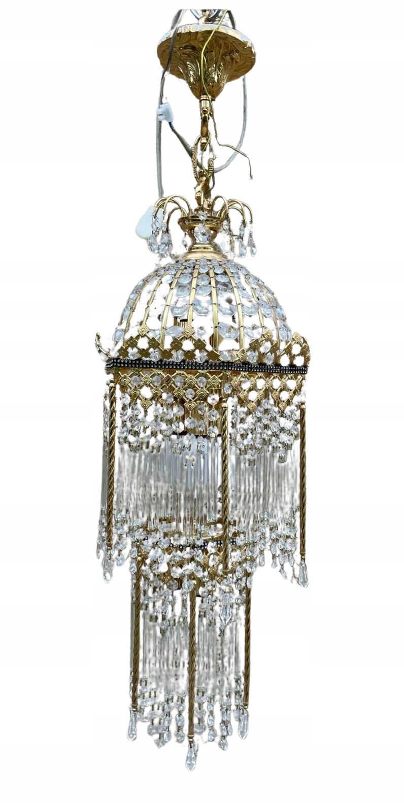 ЛАТУННАЯ ЛЮСТРА С ХРУСТАЛАМИ ЛАМПА 100см