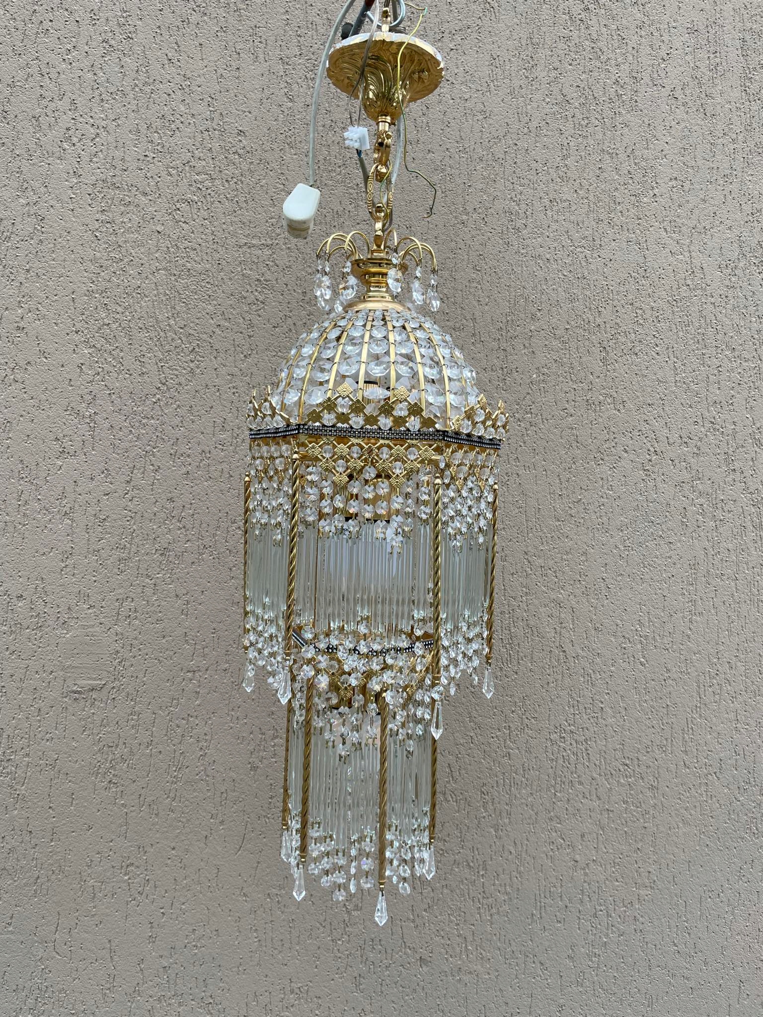 КРАСИВАЯ ДВОРЕЦОВАЯ БОЛЬШАЯ ХРУСТАЛЬНАЯ И ЛАТУННАЯ ЛЮСТРА