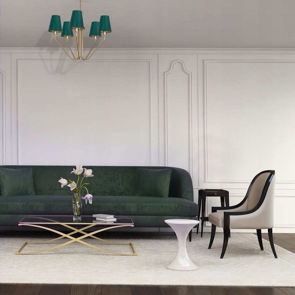 В эту линейку входят люстры, оснащенные пятью или тремя источниками света. Каждый из них доступен в трех цветовых вариантах: сочетание белого и серебристого, черного и золотого и сочетание бутылочно-зеленого и латуни.