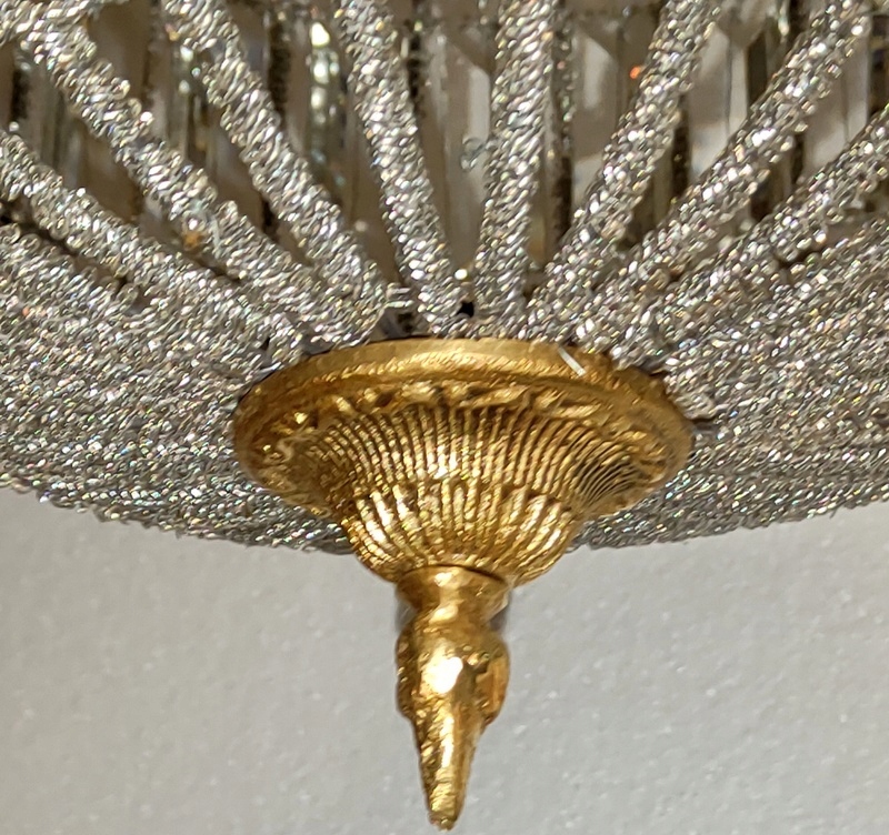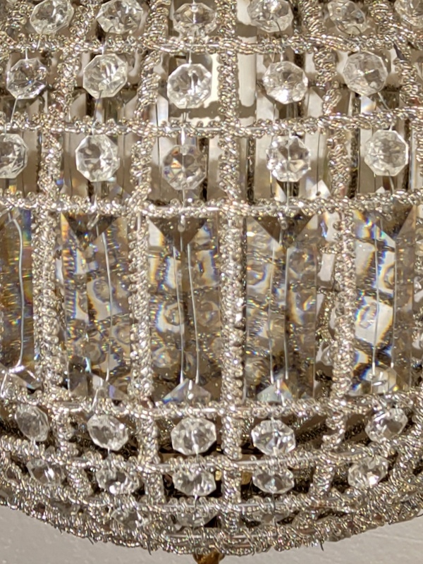Представляет собой комбинацию латуни и стекла, которая рассеивает преломленные световые лучи, в результате чего получается очень яркий и приятный для глаз свет. Дополнительным декоративным эффектом является светотень, отлитая на потолке при так называемом паутинка.