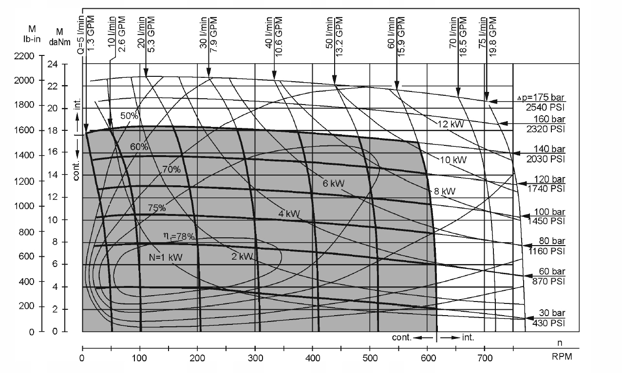 макс. Входная полоса давления [PSI] непрерывный 175 [2540] разрыв* 200 [2900] пик ** 225 [3260]