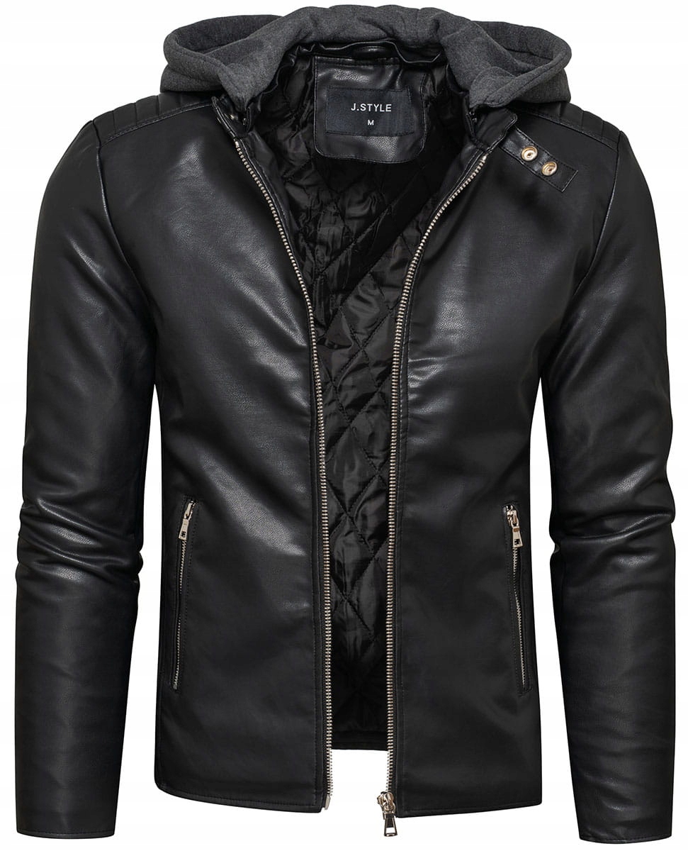 кожаная куртка с капюшоном - мужская куртка из эко-кожи. Эта куртка имеет 3 кармана: две стороны, которые закрыты с застежкой -молнией и одним внутренним скольжением. У куртки есть подкладка внутри. Капюшон - съемный. После того, как у нас есть элегантная куртка с воротником. Состав материала: 100% полиуретан, подкладка - 100% полиэстер.