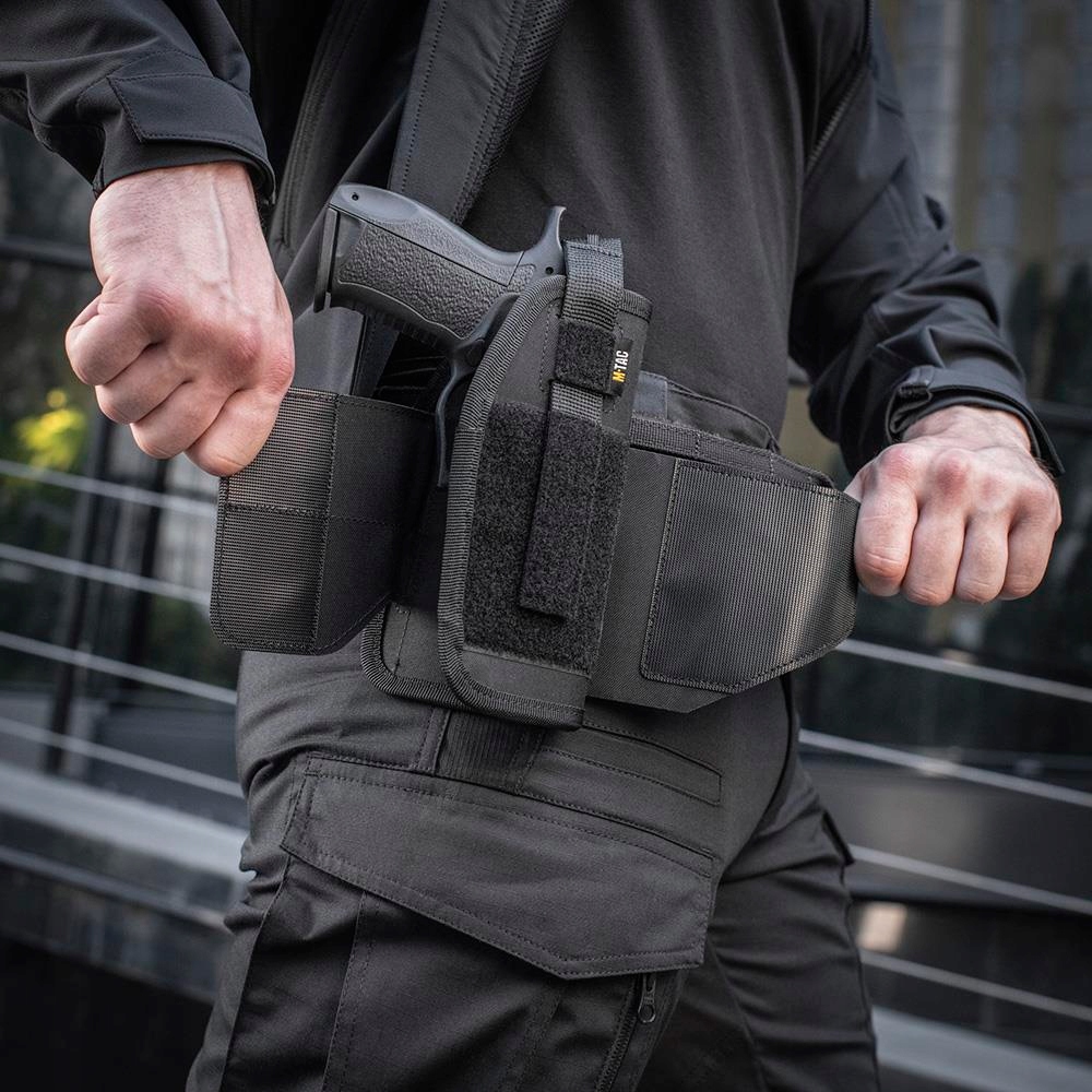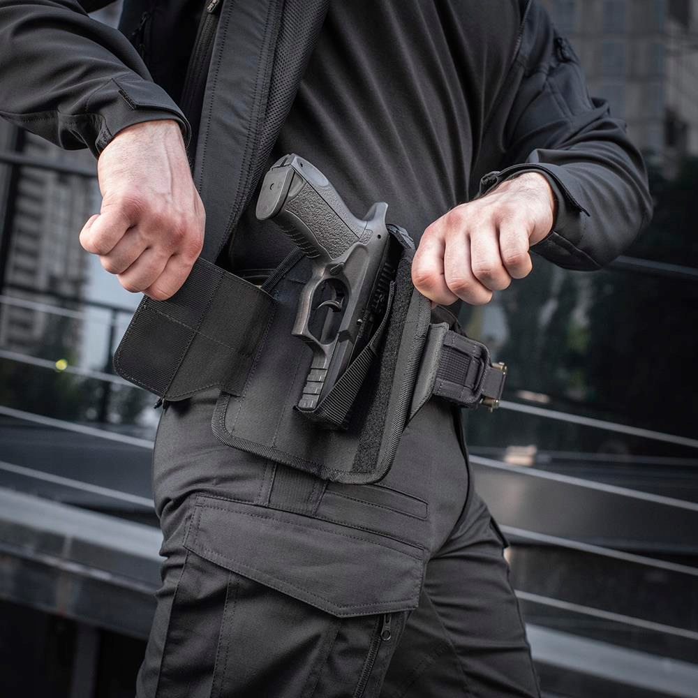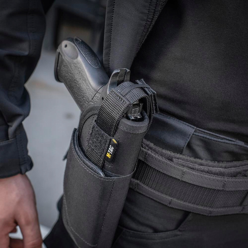 Пистолетная кобура с универсальной совместимостью, произведенной M TAC. Благодаря корректировке размера он может быть адаптирован к большинству моделей пистолетов.