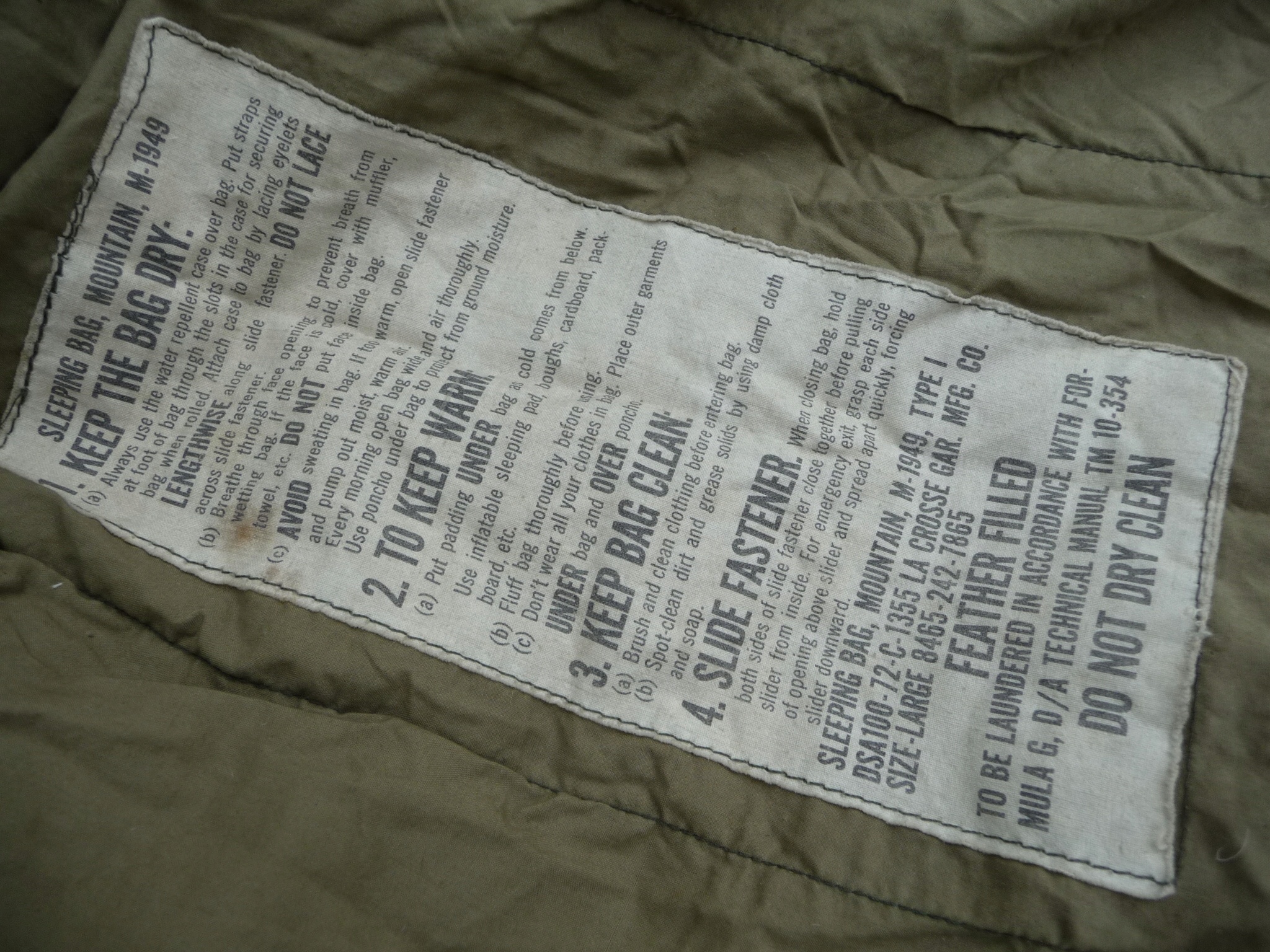 Горный спальный мешок США, модель M-1949