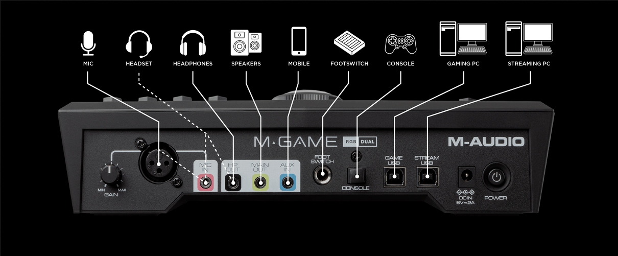, разработанный Game Guru в M-Game, в сотрудничестве с командой дизайна Audio Engineering в M-Audio, M-Game RGB Dual является мощным игровым аудио-интерфейсом и живым миксером передачи. Мы приглашаем вас к лучшему опыту, связанного с потоковой передачей.