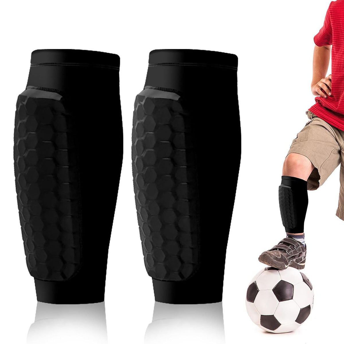 🚩🚩🚩1 пара детских футбольных щитков на ногу — дышащие и противоскользящие мужские футбольные щитки | Предназначен для подрастающих футболистов (черный)🚩🚩🚩