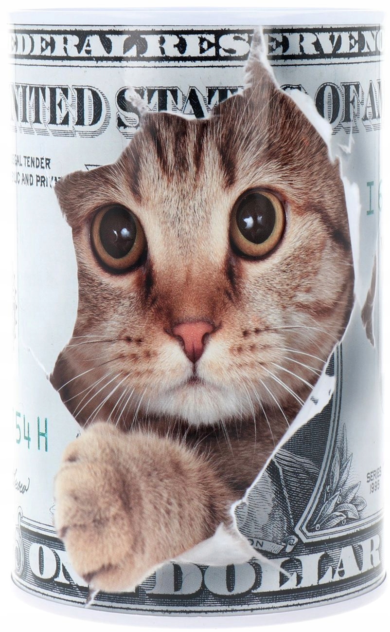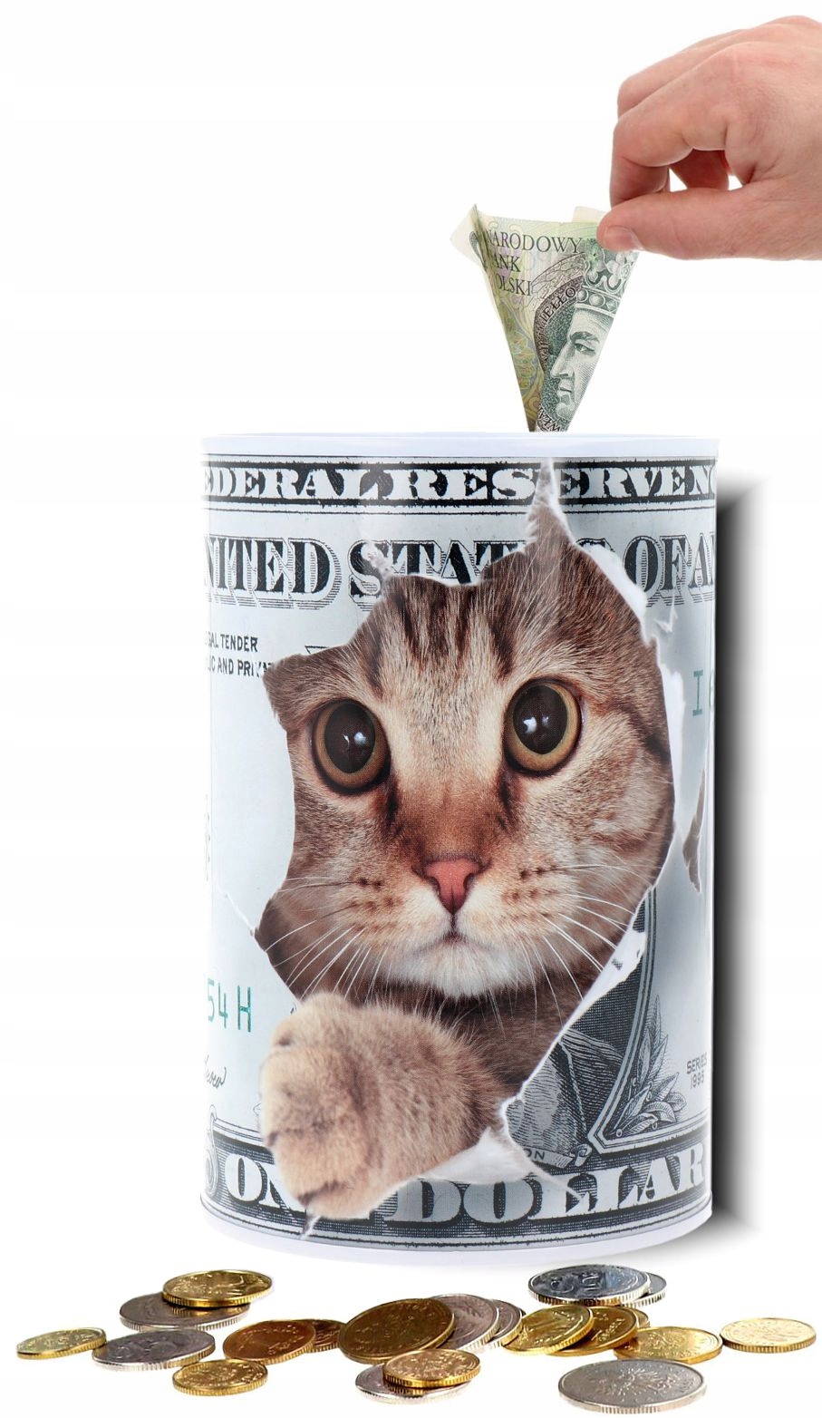 M METALOWA PUSZKA SKARBONKA NA PIENIĄDZE BLASZANA NIEOTWIERANA DOLAR KOT 1
