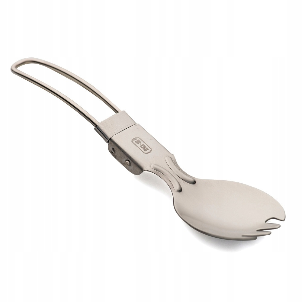 Ложка выживания от M-TAC® представляет собой компактную смесь складных столовых приборов (так называемую спорк), то есть комбинацию ложки и вилки. .