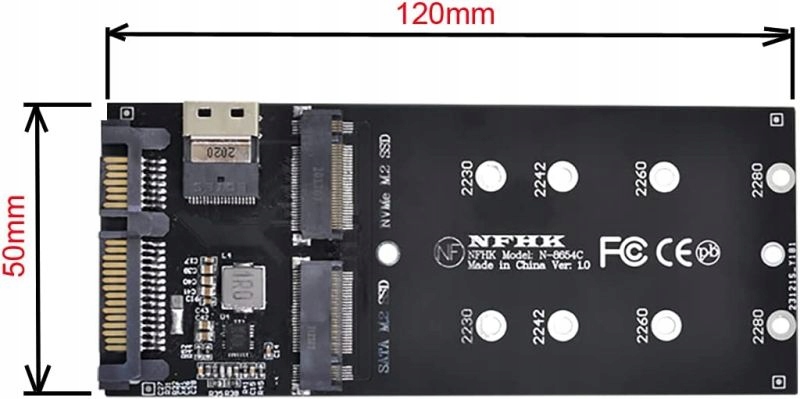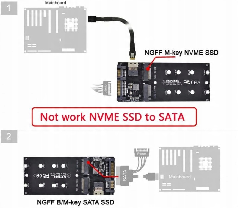 M.2 NVMe до SFF-8654 + адаптер M.2 SATA до SATA 22