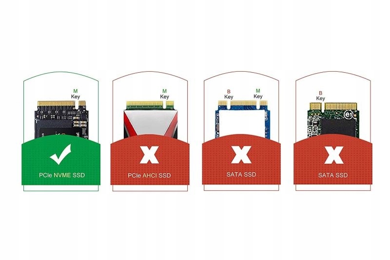 - Адаптер не поддерживает AHCI PCIe или твердотельный накопитель M.2 на базе SATA