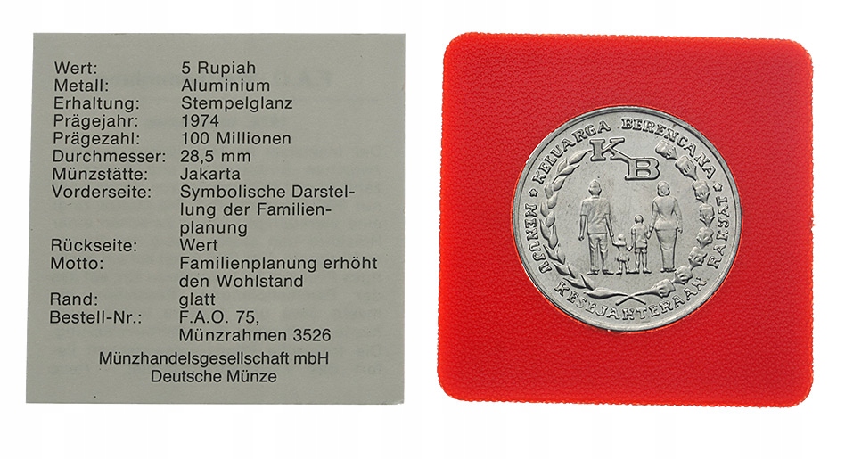 [M0168] Индонезия 5 рупий 1974 года ФАО 1.