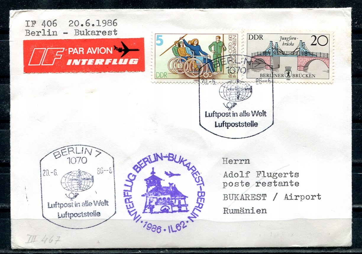 M1145)DDR Interflug-FFC 1986 Berlin - Bukarest
