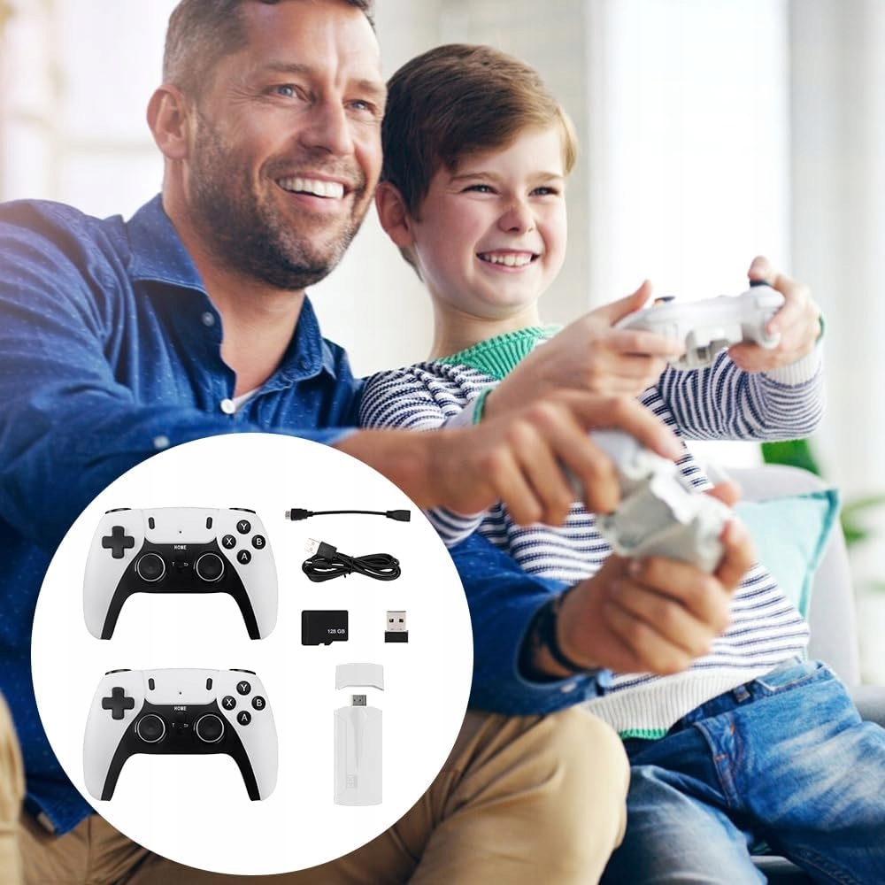 - 👾Игровая консоль в стиле ретро оснащена двумя беспроводными геймпадами с частотой 2,4 ГГц. Игровая консоль поддерживает одновременную игру двух человек, чтобы избежать помех, вызванных проводами во время игр.