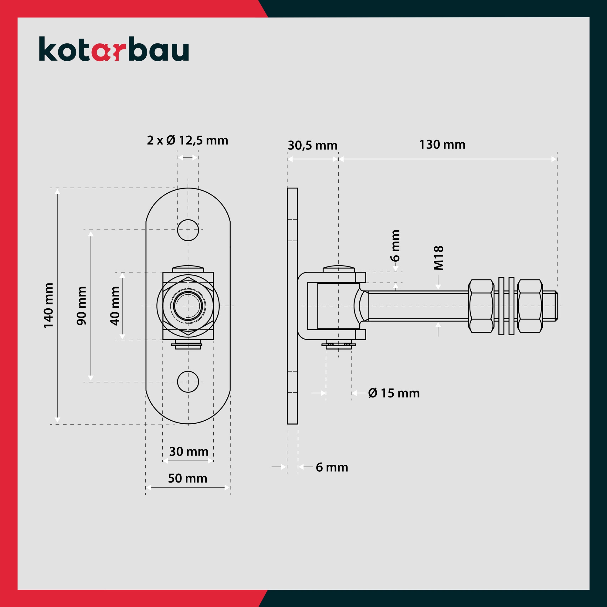 - Отверстия для винтов: Ø 12,5 мм