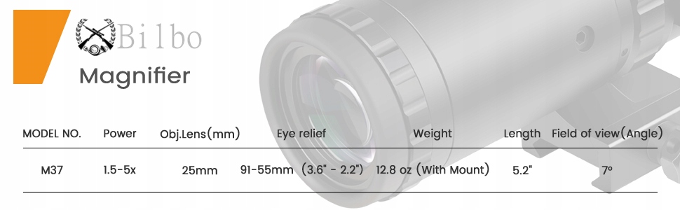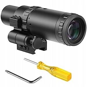 - M37 M37 BETORLICE SISTICE - это быстрый и удобный способ увеличить диапазон профессионального коллиматора. Поместите увеличение за коллиматором или коллиматором, чтобы немедленно увеличить изображение с мощности 1,5-5X. Оптика полностью покрыта многоуровневым покрытием для оптимальной передачи света. Светлый и прочный конструкция алюминия, изготовленная из твердого укладывания лака, обеспечивает долговечность.