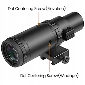 - Это оптическое увеличение добавляет переменного увеличения в 1,5x - 5x к стандартному прицелу с красной точкой и поддерживает широкое поле зрения с удобным расстоянием от глаз 2,2-3,6 дюйма. ценить вид.