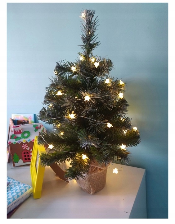 MAŁA CHOINKA NA ŚIĘTA 65CM JUTA NA BIURKO DO POKOJU ZESTAW DRUCIK 20LED