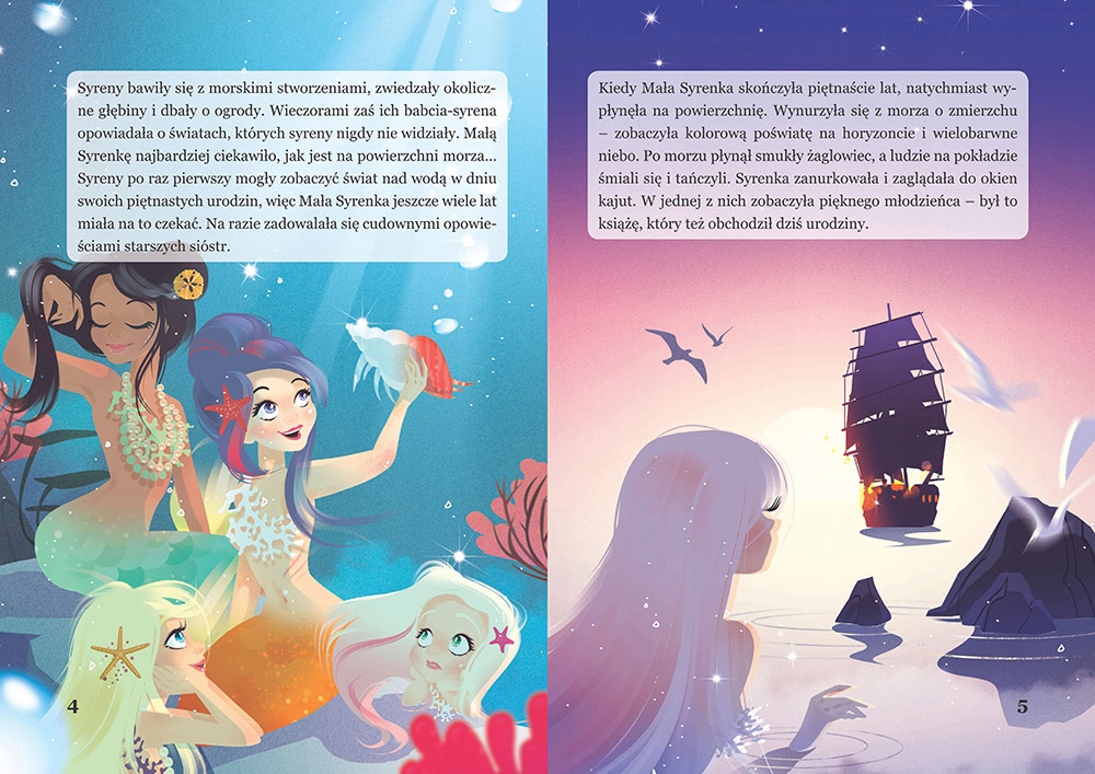 На дне мирового океана обитают красивые существа с рыбьими хвостами. Это русалки с чудесными волосами и способностью чудесно петь. Однажды одна из них влюбляется в принца, чью жизнь она спасает во время бури. С тех пор ее самая большая мечта – стать человеком и жить со своим любимым. Но возможно ли это вообще? Прочтите приключения влюбленной русалки и узнаете ответ.