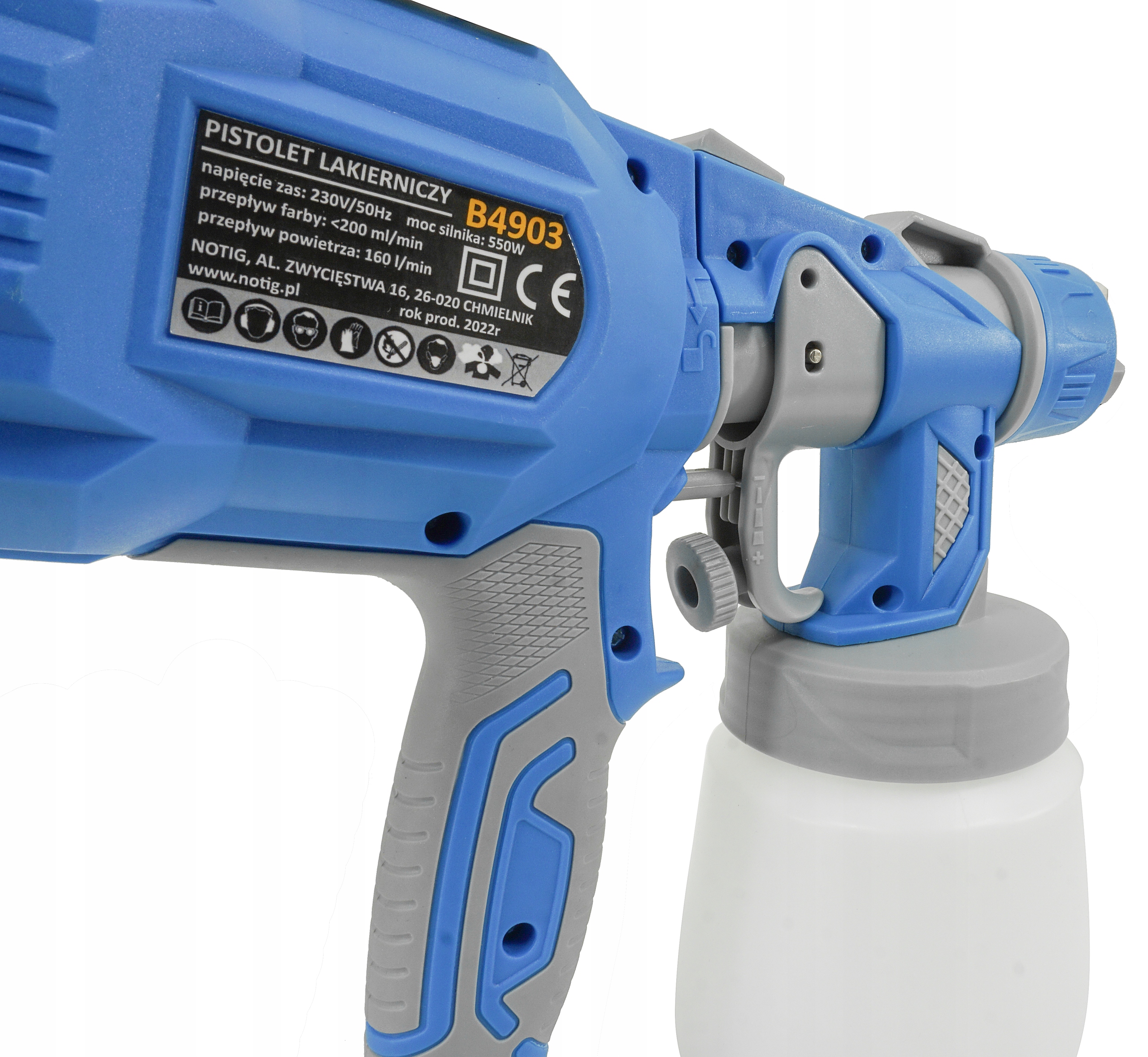 Электрический окрасочный пистолет Notig Tools оснащен прочным и эффективным двигателем мощностью 550 Вт. Устройство позволяет наносить краски различной плотности, краски. на лаках на водной основе, на основе растворителей, грунтовках, отделочных, герметизирующих и грунтовочных красках для древесины. Благодаря распылению можно быстро и точно окрасить труднодоступные места, а также обеспечить равномерное покрытие неровных поверхностей. Соответствующий поток получается вращением сопла. Благодаря встроенному компрессору не требуется внешняя подача сжатого воздуха. Курковый переключатель на пистолете имеет регулировку подачи краски.