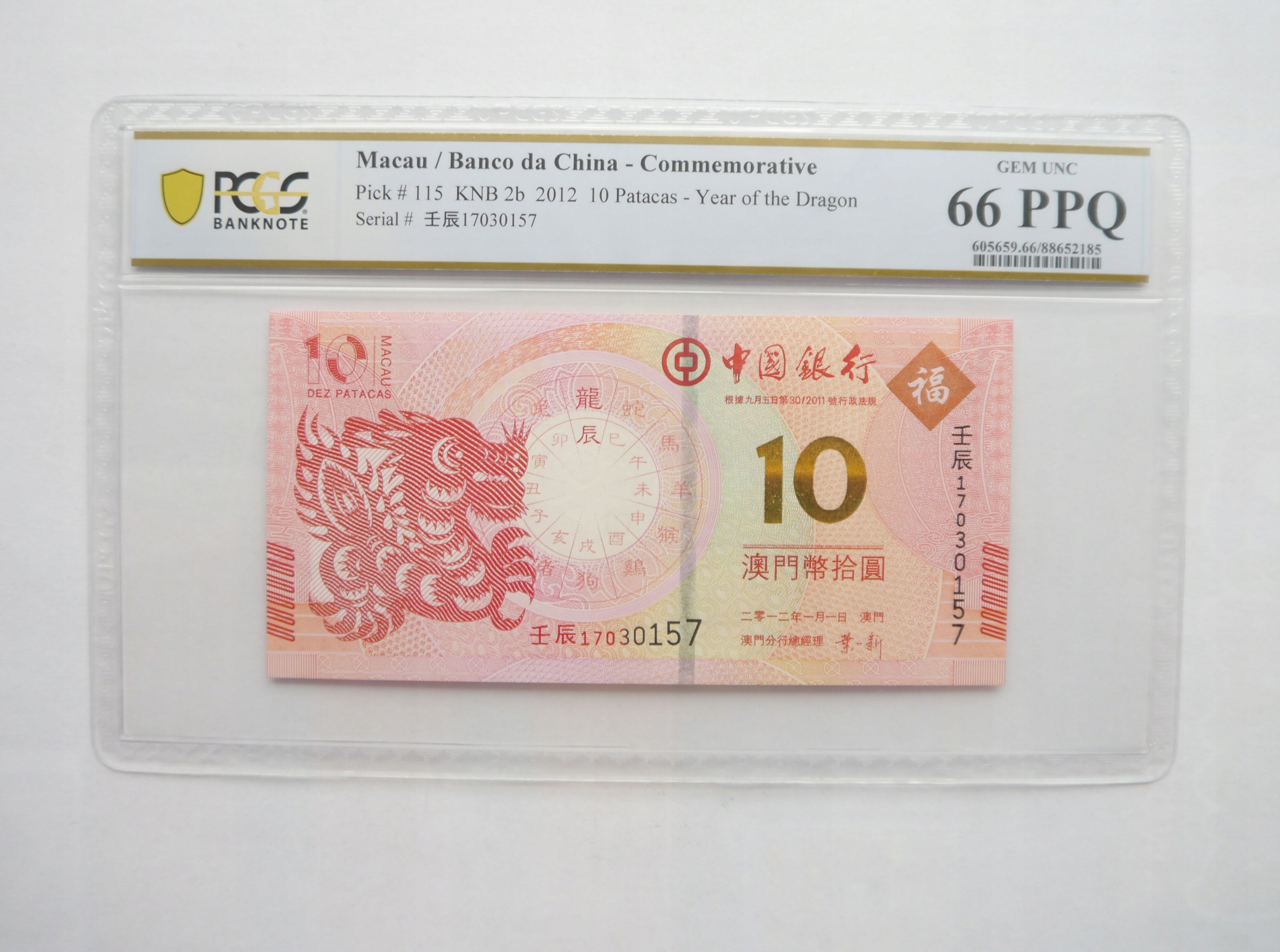 Macau 10 Patacas 2012 Bank of China Rok Drage Dragon PCGS 66 PPQ
