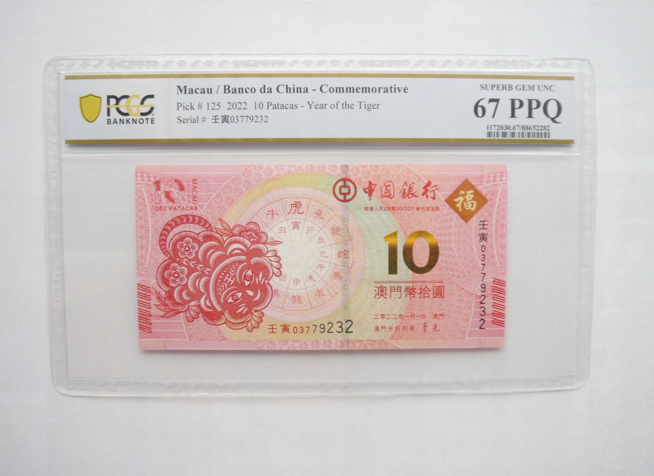 Macau 10 Patacas 2022 Bank of China Tiger Year PCGS 67 PPQ