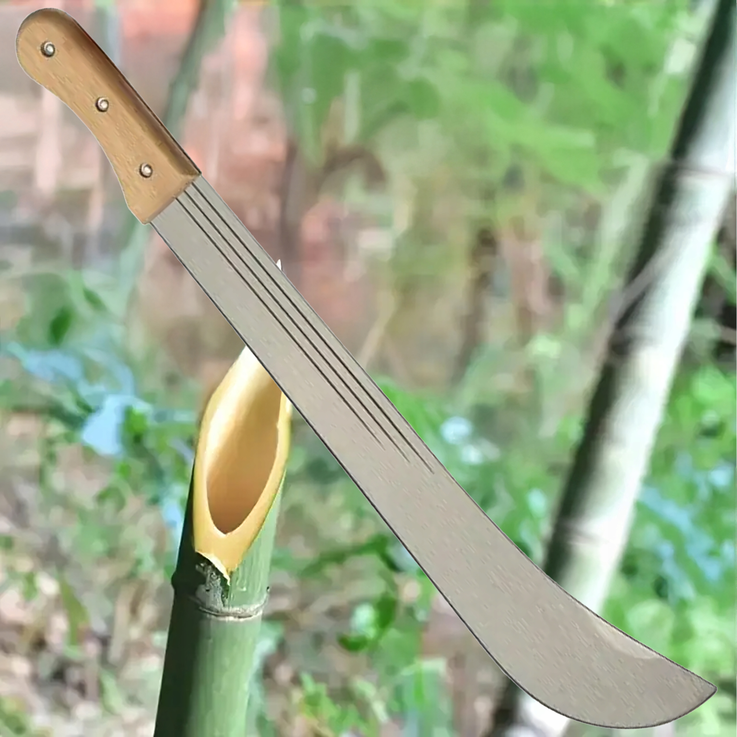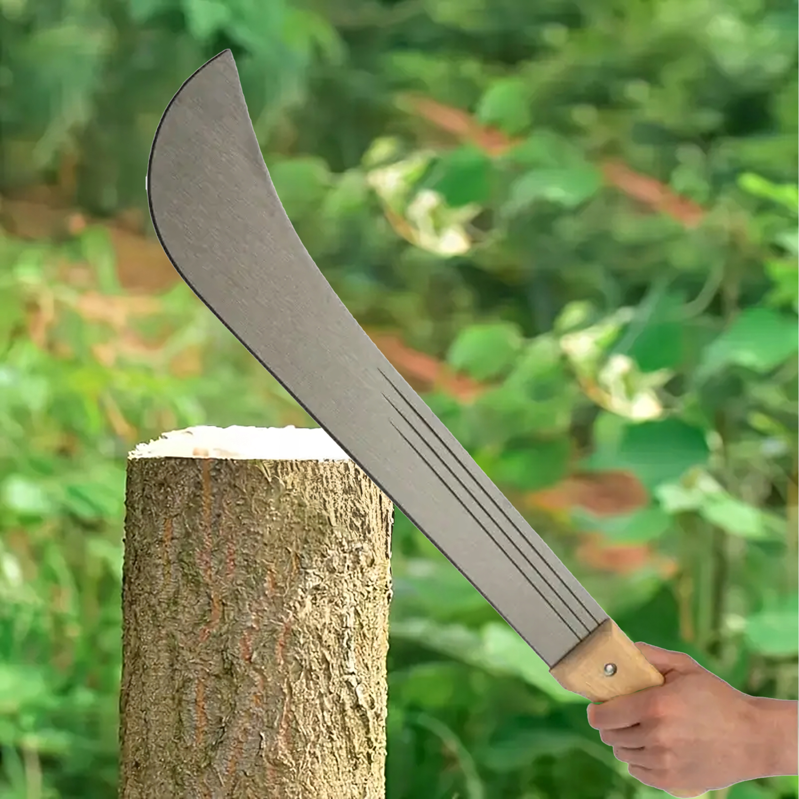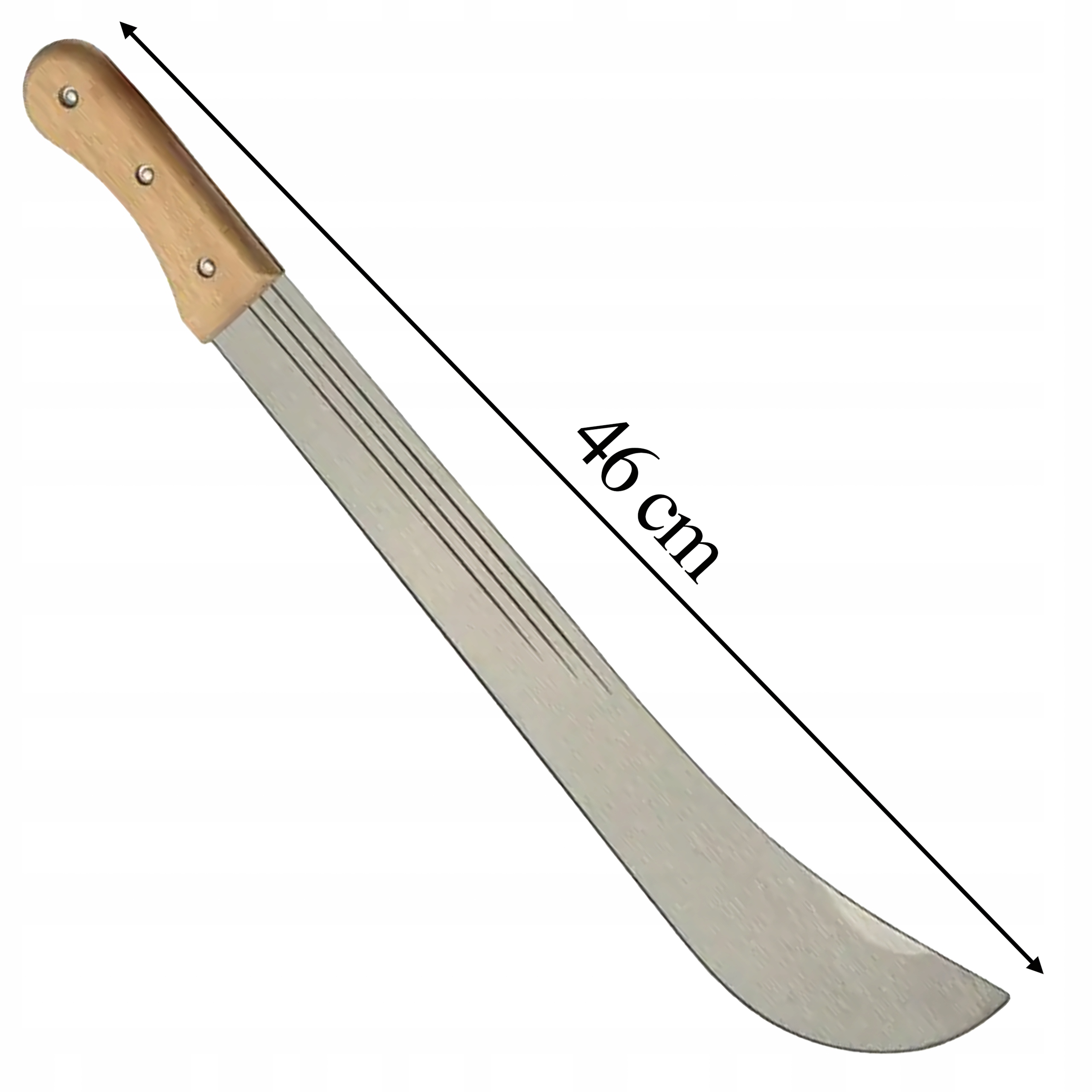 Закаленный садовый мачете длиной 46 см — это прочный инструмент, идеально подходящий для обрезки ветвей, расчистки кустов и выполнения задач выживания. Благодаря острому стальному лезвию он долговечен и эффективен. Деревянная ручка обеспечивает удобный и надежный захват во время работы.