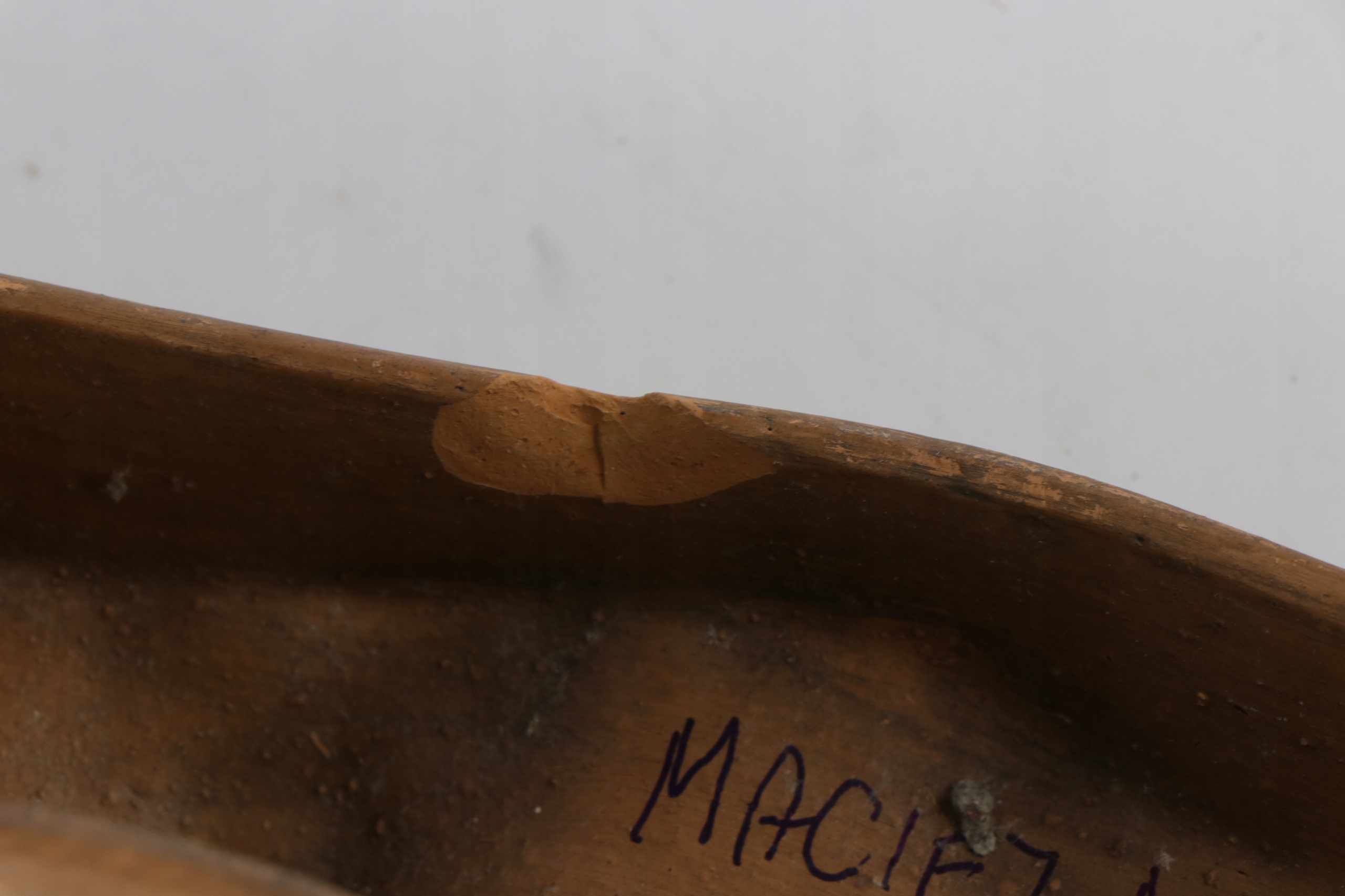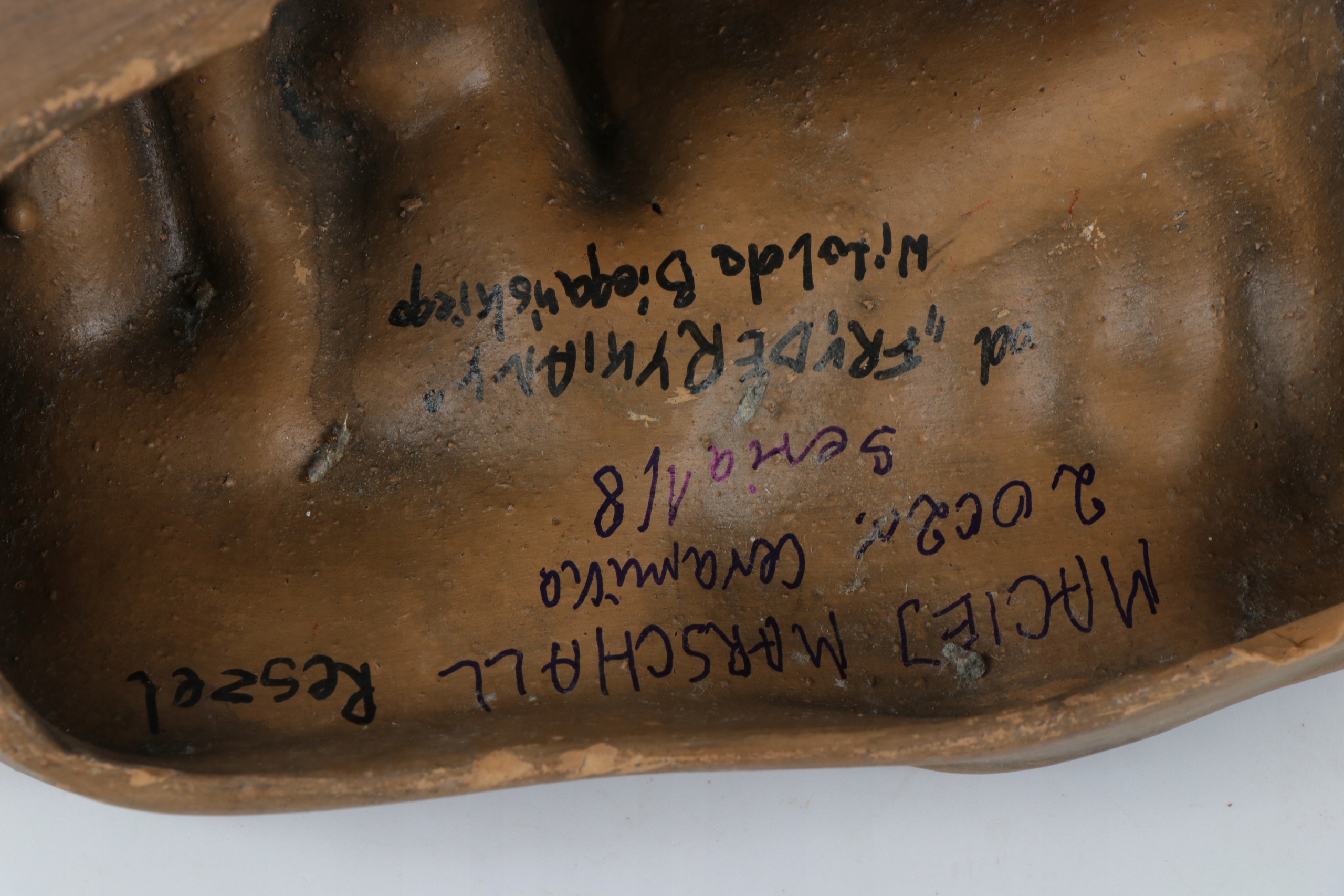Скульптура лица из терракоты. Внутри, подпись Мацея Маршалла, 2002 г. (?)