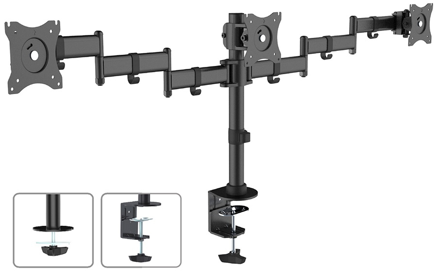 Держатель позволяет установить 3 отдельных монитора по данному стандарту VESA.